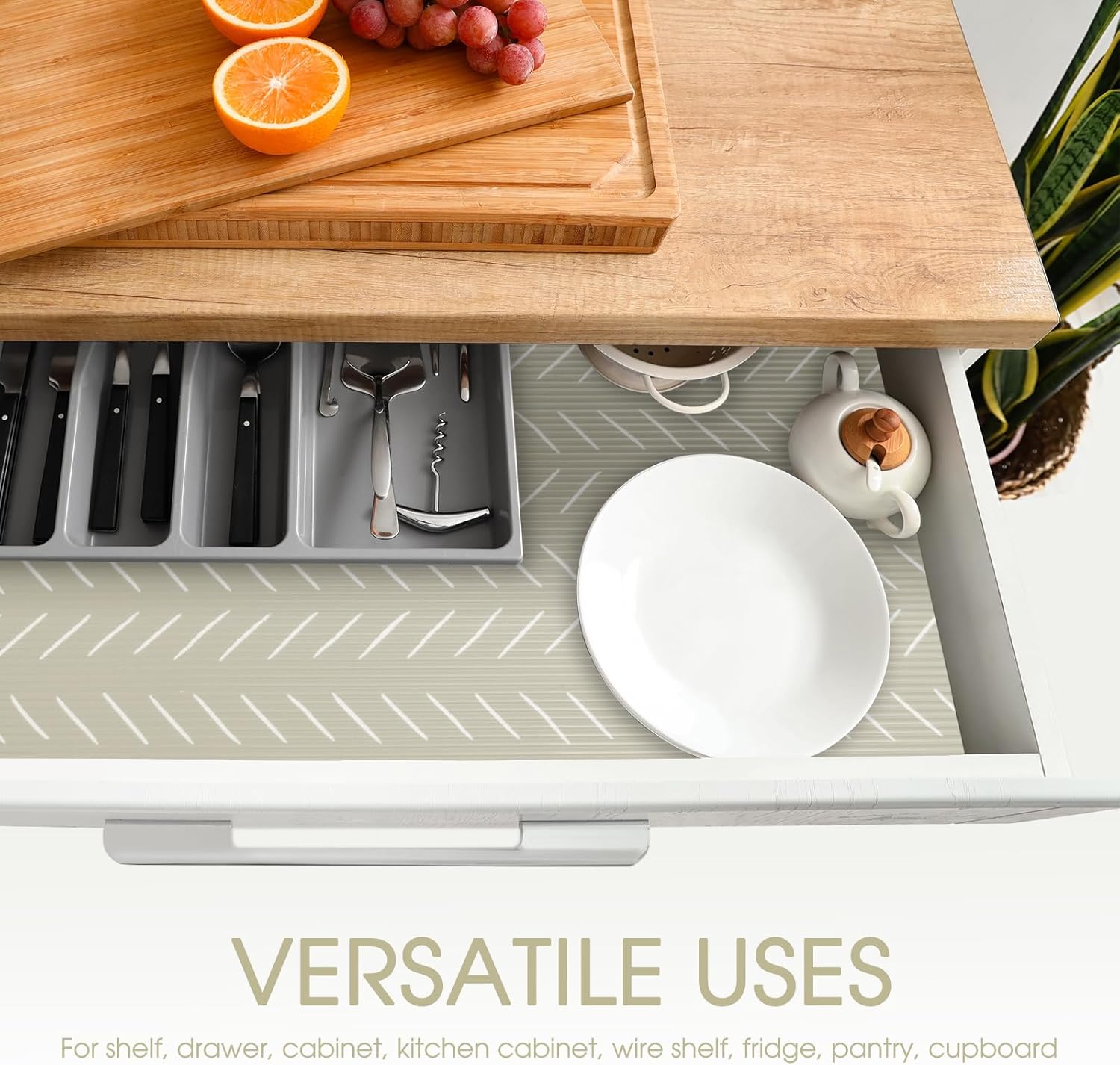 Glotoch Premium Non Slip Shelf Liner, Non Adhesive Drawer Liner, Waterproof Shelf Liners for Kitchen Cabinets, Drawer, Fridge, Wire Shelving, Pantry-12" X240", Heavy Duty, Beige Herringbone