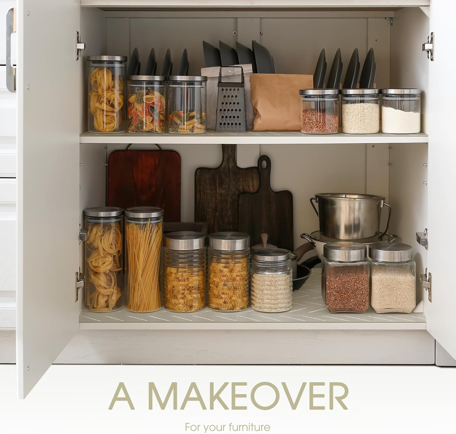 • Premium Cabinet Liner Made of Food-Grade EVA Material: This kitchen, drawer, cabinet, shelf, fridge and general storage shelf liner is made of BPA-free, odor-free, EVA material for your safety. The non-slip design sticker on the bottom of this drawer liners for kitchen allows your kitchen supplies to stay organized, in place and on the shelves, wire rack and pantry