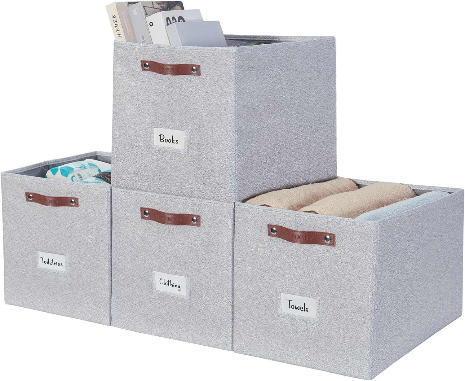 DECOMOMO Storage Baskets, 13x15x13 Storage Cube Bins with Labels for Organizing Shelves (Kallax / 4pcs, Light Grey)