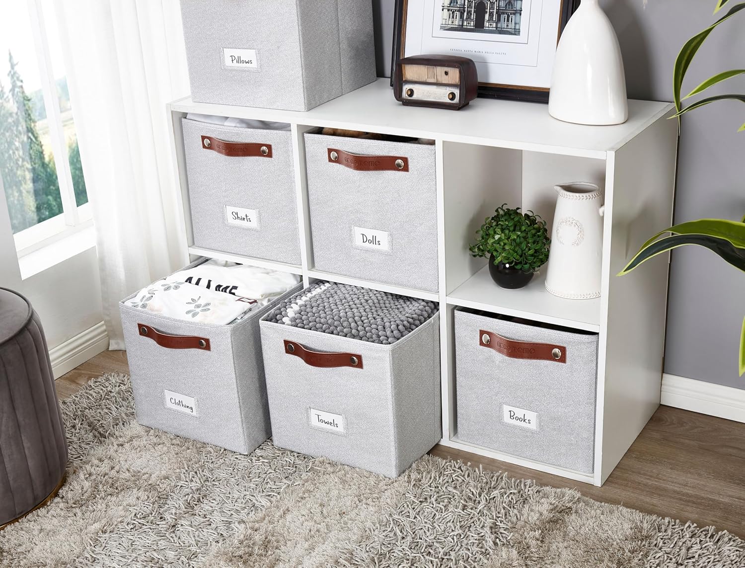 DECOMOMO Storage Bins, Cube Storage Bin with Labels, Fabric Storage Cubes for Shelves (11" / 6pcs, Light Texture Grey)