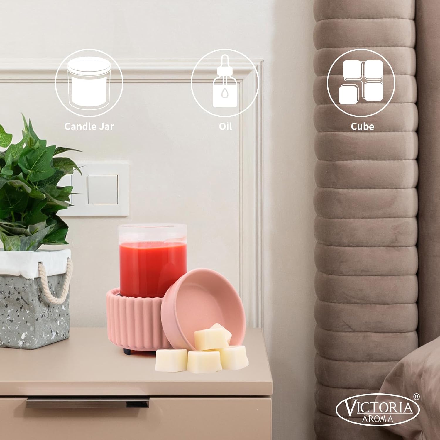Ceramic Wax Melter 3-in-1 Candle Warmer for Scented Wax - Electric Fragrance Burner for Home, Office, Bedroom - Gift & Décor(Pink)