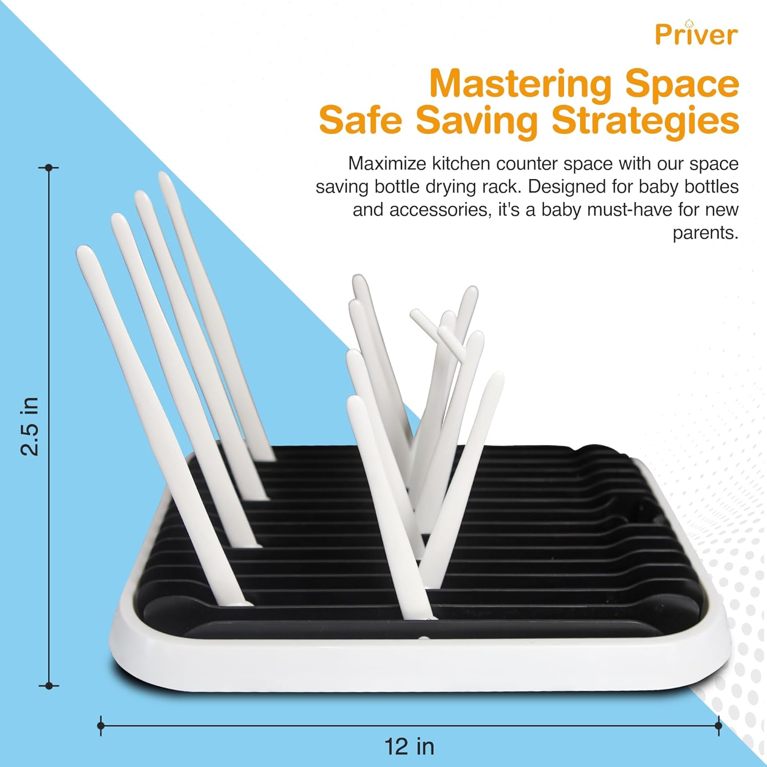 Priver - Baby Bottle Drying Rack with Tray - Space-Saving Drying Rack for Baby Bottles, Cups, Pump Parts - High Capacity Bottle Dryer - Travel Essentials - Newborn Essentials Must-Haves, White