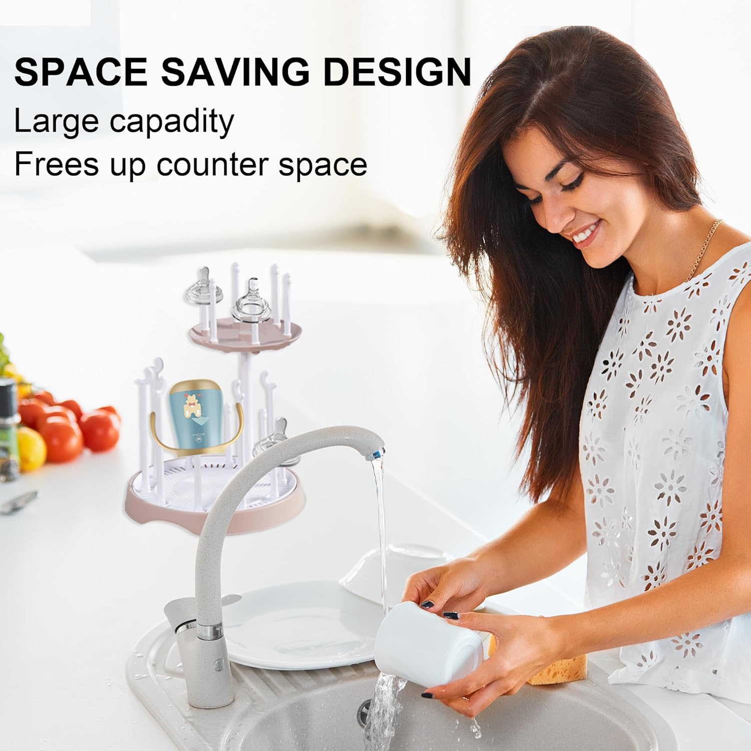 Baby Bottle Drying Rack,Double-Layer Bottle Drying Rack,Hold Up to 16 Baby Bottles,Suitable for Indoor, Kitchen, Living Room(Pink Lotus Root)