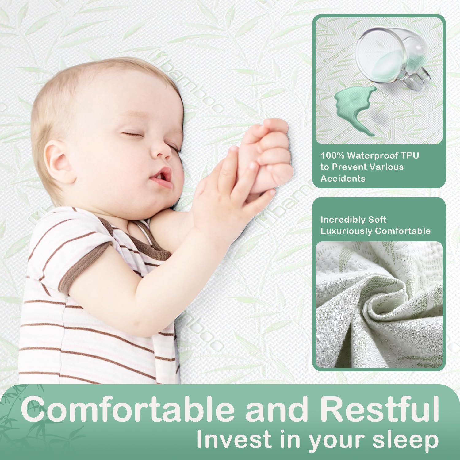 • 【Waterproof Mattress Protector】(72” x 84” California King Size)Experience the ultimate in protection and comfort with our waterproof mattress protector featuring an upgraded TPU waterproof layer. Enjoy exceptional waterproofing without sacrificing breathability, ensuring your mattress remains free from all liquid mishaps and stains. Defend against spills, stains
