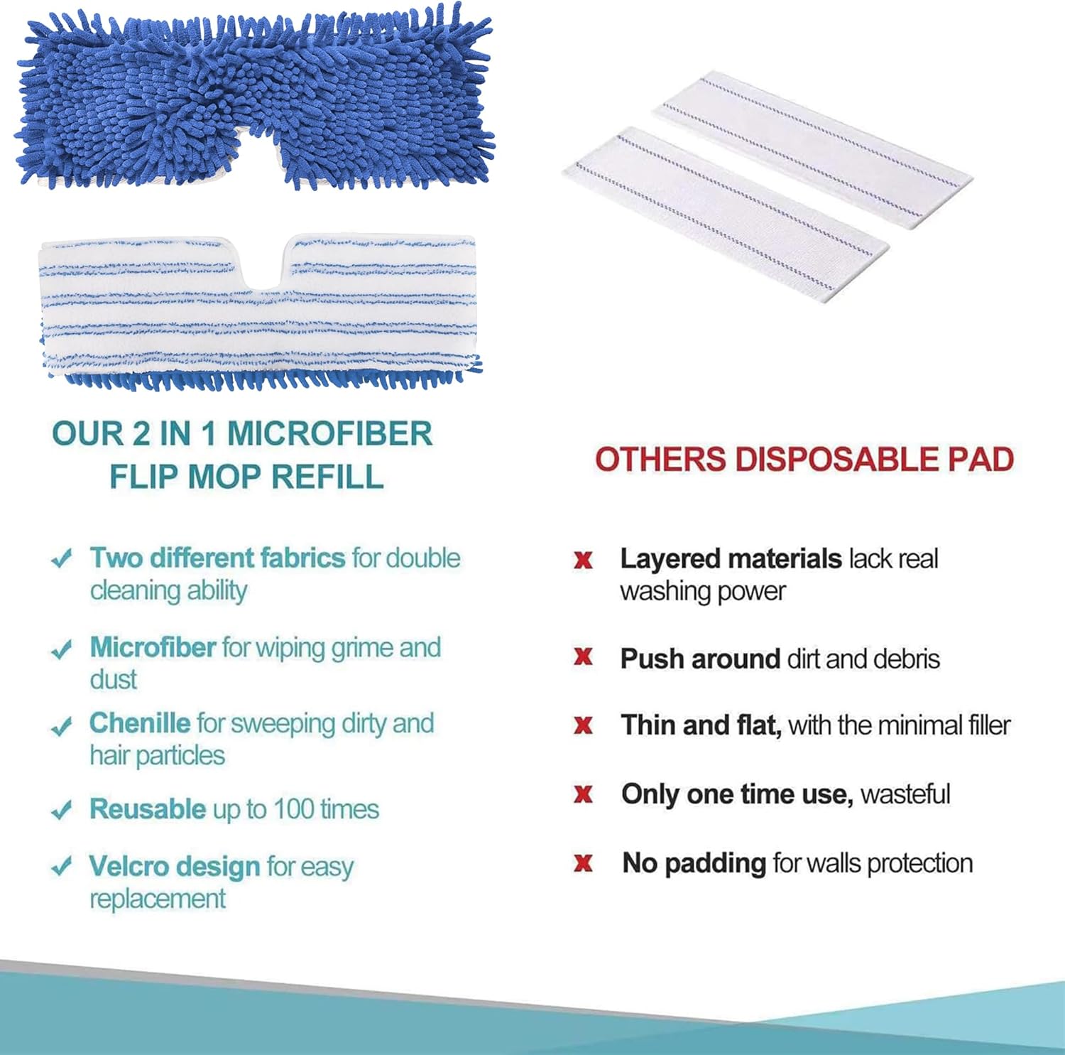 4 Pack Mop Heads Replacements Compatible with O Cedar Dual-Action Flip Mop, Microfiber Chenille Mop Pads for Wet & Dry Floor Cleaning and Scrubbing, Reusable & Washable Dust Mop Refills