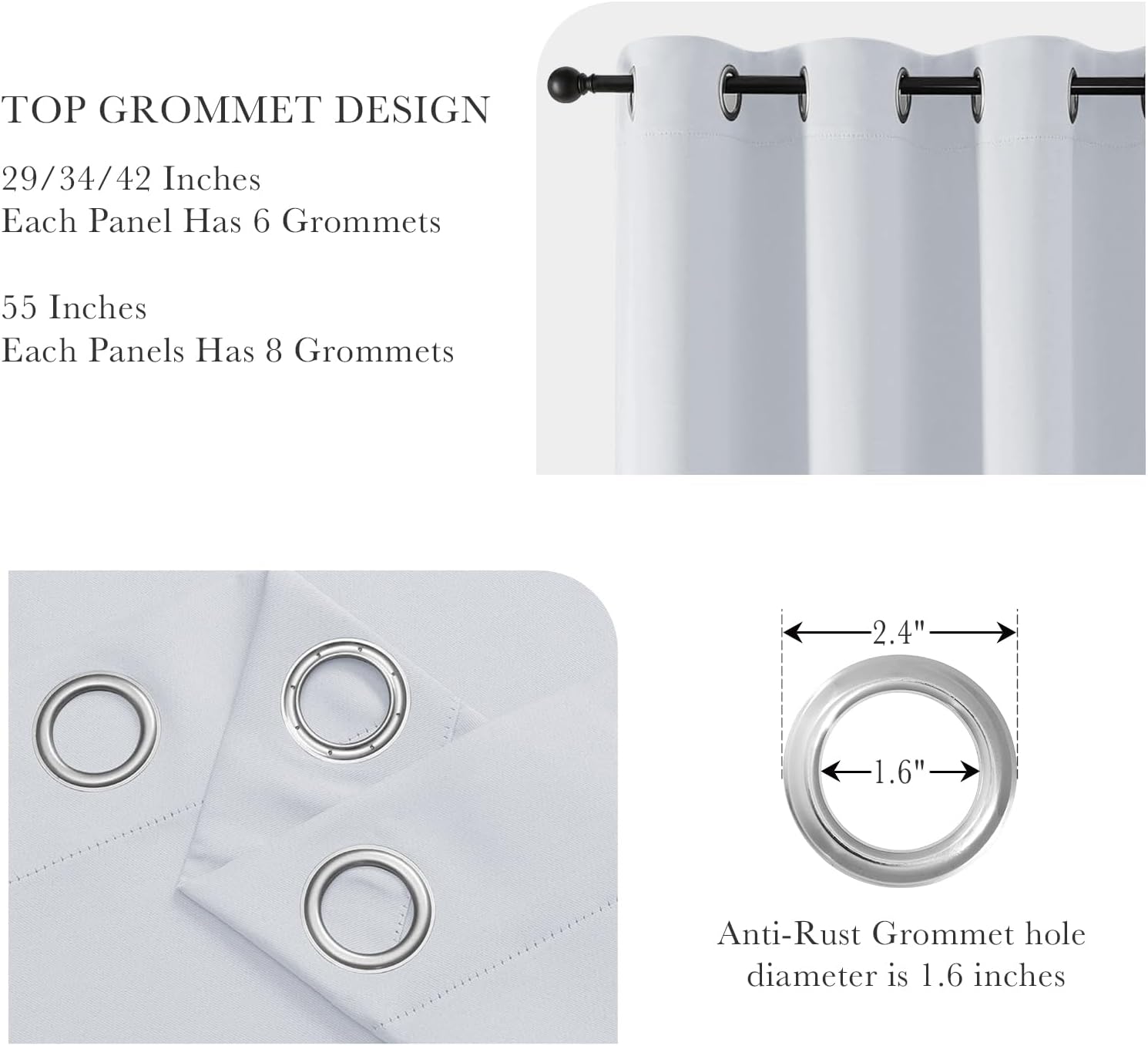 • READY MADE - 2 panels include, each measures W34" x L24", 6 silver grommets(1.6" inner diameter) fit most standard rods. For proper fullness, panels should measure 1.5-2.6 times the width of your window