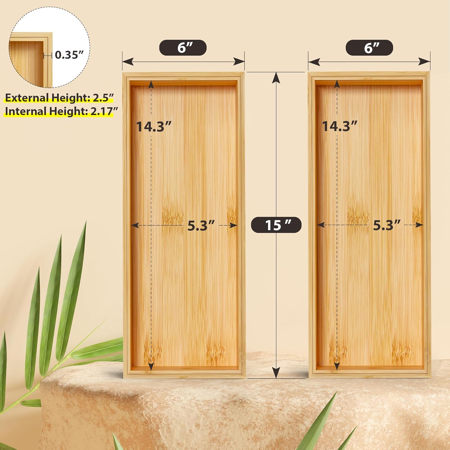 Kitchen Drawer Organizer Bins, Stackable Bamboo Deep Drawer Organizer for Silverware, Utensils, Cutlery, Flatware, Junk Drawer, Dresser, Bathroom, 15" x 6" x 2.5" (Set of 2)