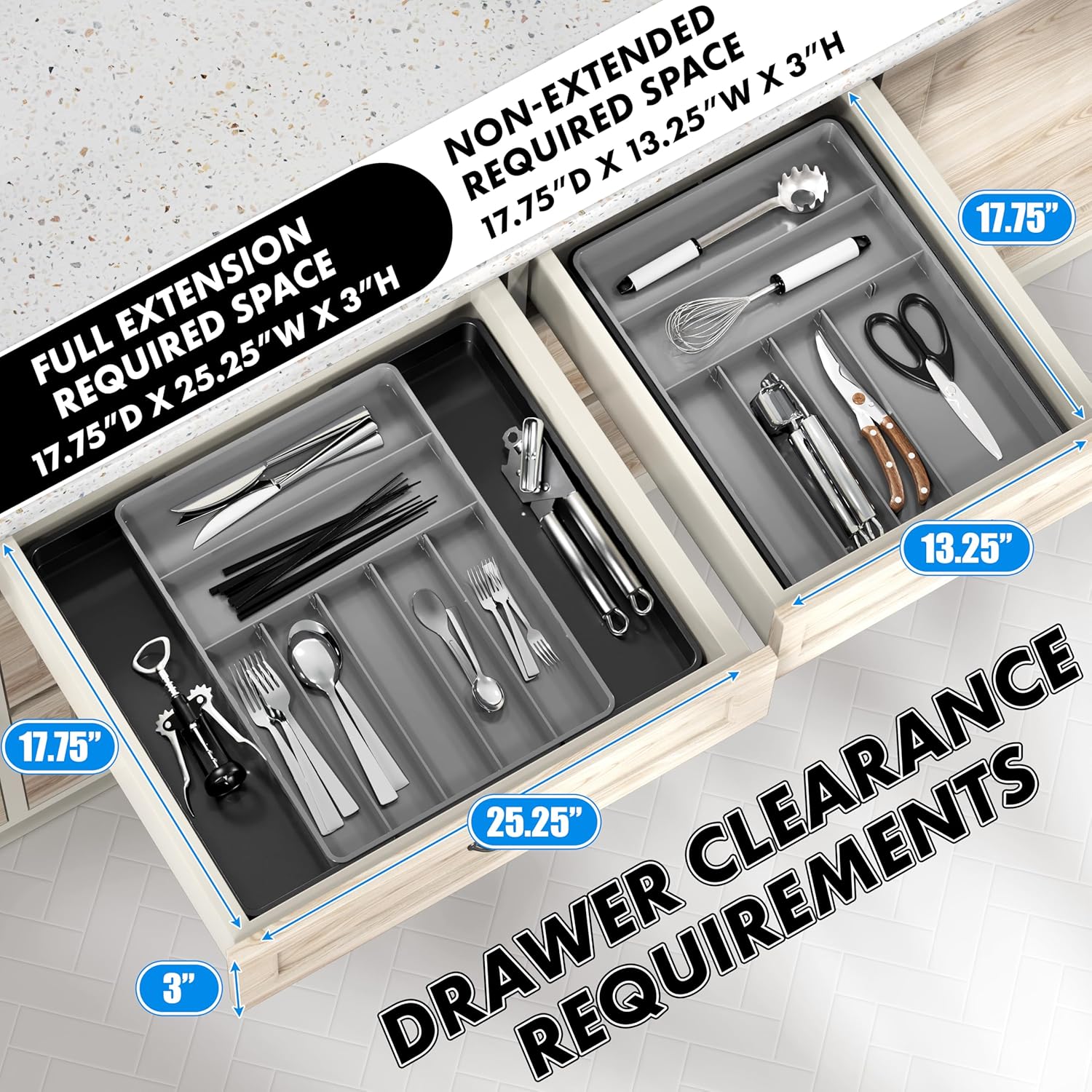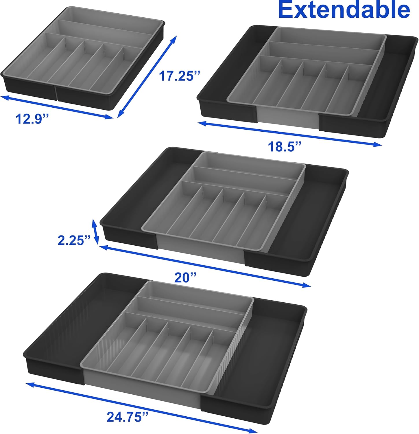 Simple Houseware Expandable Kitchen Drawer Flatware Organizer, Black/Gray