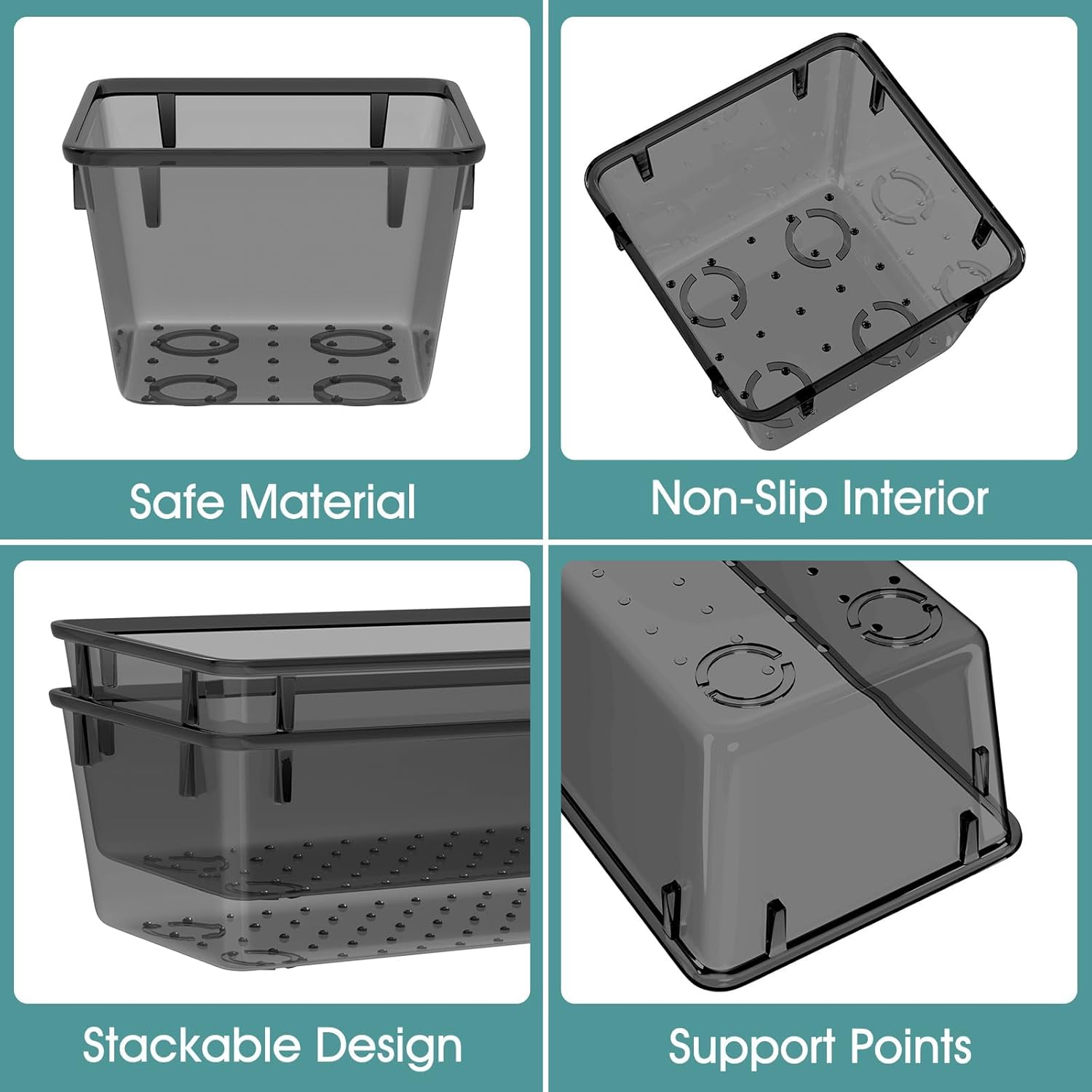 • Long Lasting and Non-Slip: The plastic has 3-5 times the impact strength of other materials and is robust and long lasting. The bottom of the storage organizers has a non-slip design to prevent the tray from moving around when the drawer is used
