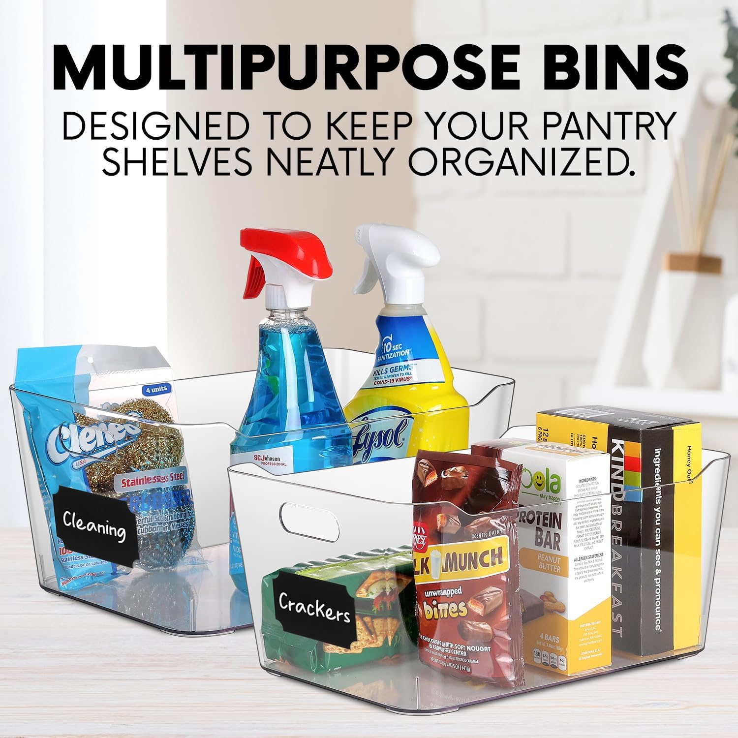 • YOU WON'T FIND A MORE VERSATILE SET OF BINS: You can use these large clear plastic storage containers for organizing any space in and around your home – the kitchen, cabinets, closets, pantries, bedroom, dining room, laundry room, nursery, garage, kids toy room, under sink organizers and more.