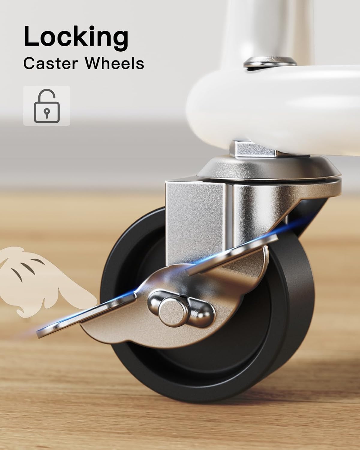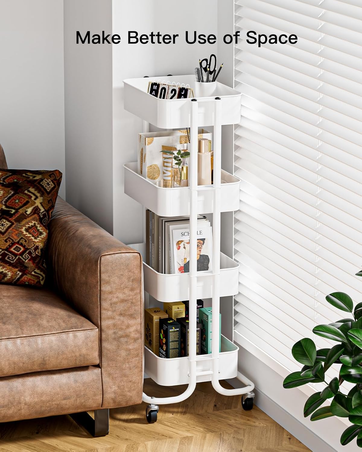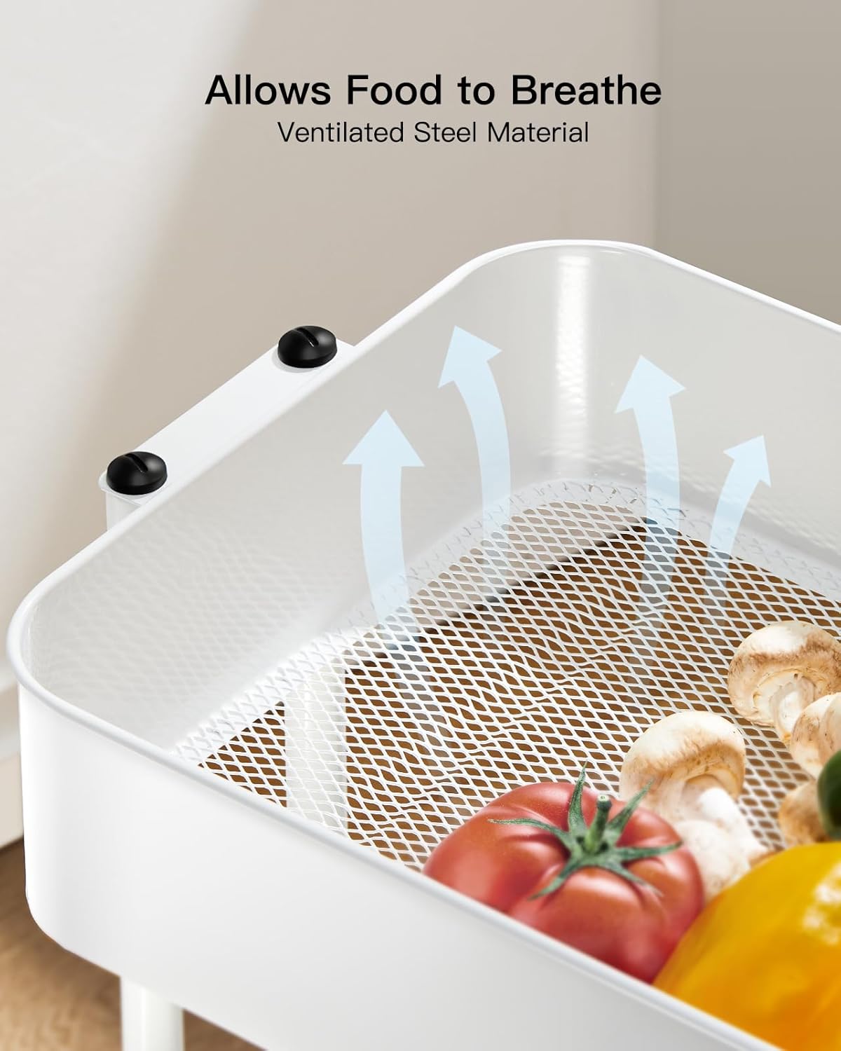• Considerate Design:Two wheels are equipped with locks to keep the storage utility cart firmly in place, a great feature for families with children and pets. The 4 tier rolling cart is designed with steel mesh baskets for better airflow to keep items such as vegetables and fruit dry. Each utility craft cart basket of this utility cart is deep so that your storage stays in place, even if it is round-shaped or prone to shifting during movement.