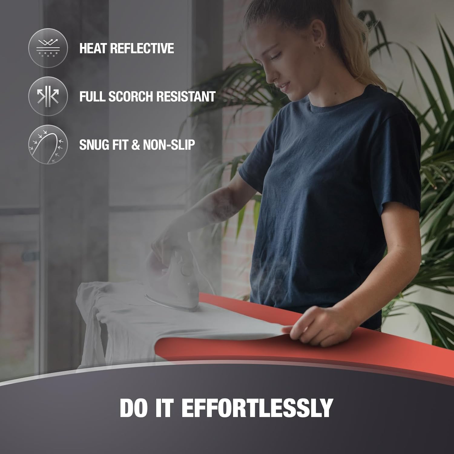 • EASY & QUICK IRONING : Accelerate and make simple your ironing process with our innovative ironing board cover. Heat reflective coated that reflects heat rather than absorbing it, this ironing board cover ensures faster and more effective ironing. Also the cover remains securely in place during use, thus you can finish your work more effortlessly.