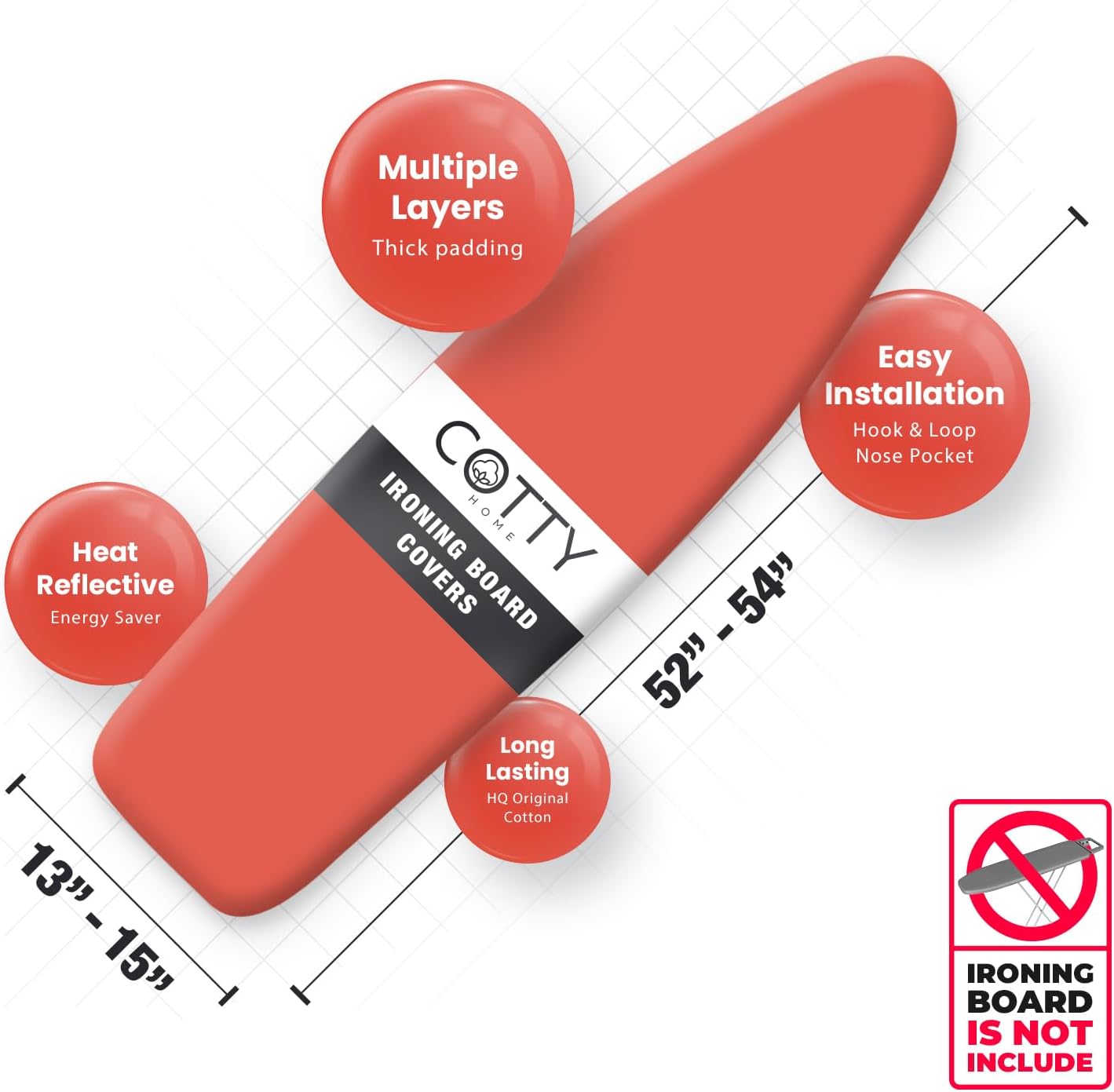 • TIME & ENERGY SAVER : The heat reflective coating of the ironing board cover allows you to iron faster and easier. Thus, you can easily do your ironing work by spending less energy and time. Also this heat-reflective coating technology durable against frequent use.