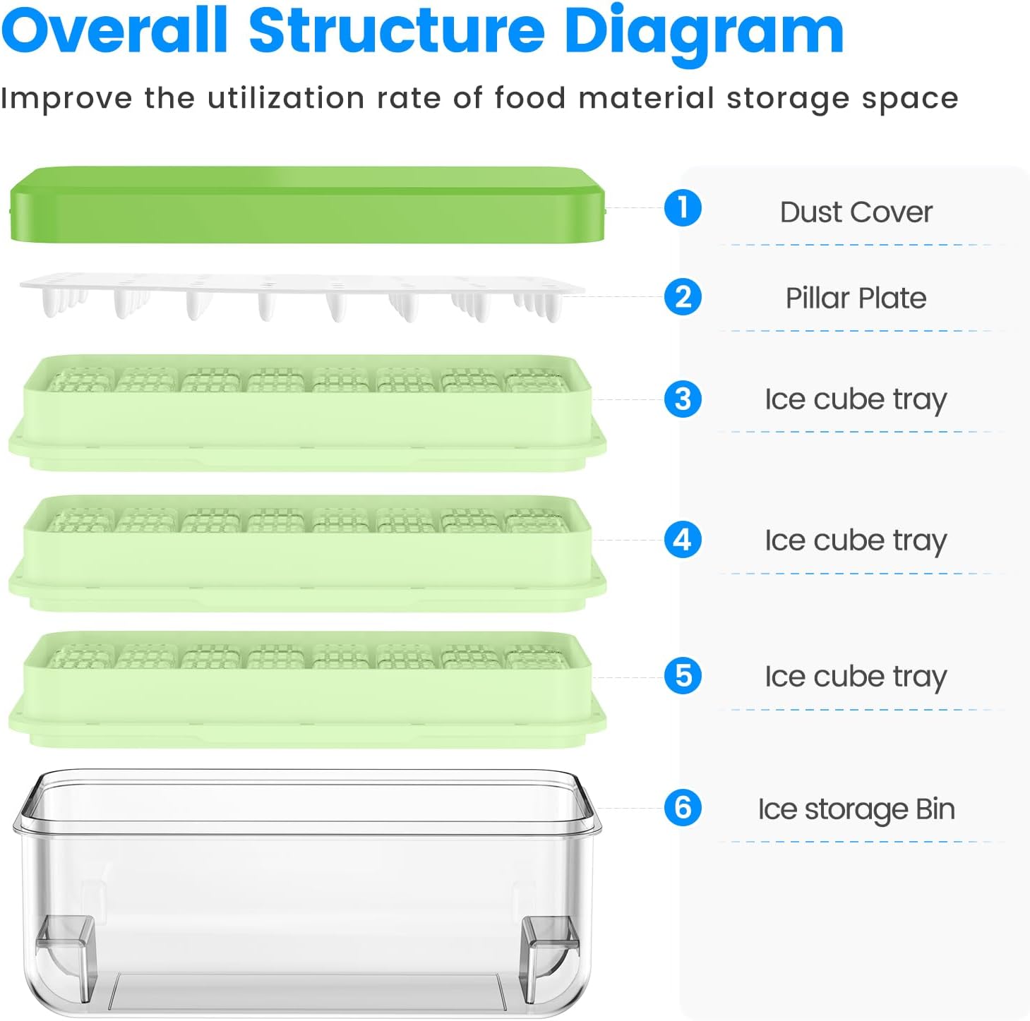 • Food Grade Material & BPA Free:This ice trays for freezer with lid and bin are made of food grade PP material, which is safe and can be frozen and used repeatedly for a long time.The ice cube tray is NOT DISHWASHER SAFE