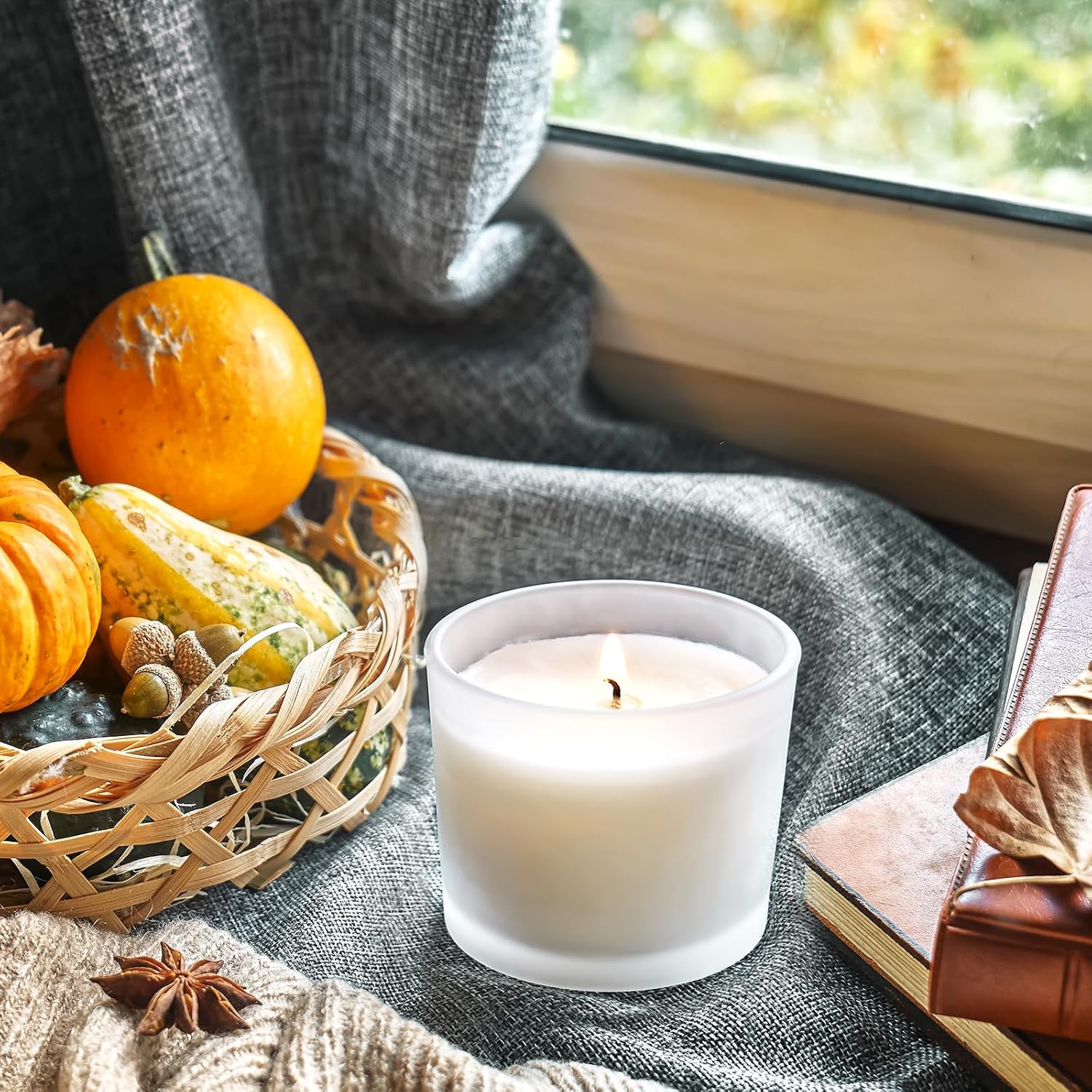 12 OZ Thick Candle Jars for Making Candles 12 Pcs, Empty Jars with Wood Lids for Spice Jars, Sample Container, Frosted White