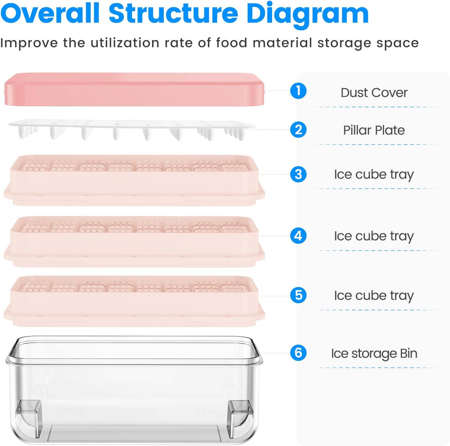 • Newly upgraded press-type ice cube trays, Releases all ice cubes in one second: This ice cube Molds is made of high quality food grade hard plastic and is BPA free. After placing one ice tray upside down on the ice storage bin, close the lid and press the middle of the lid with both hands, all ice cubes can be easily released in one second