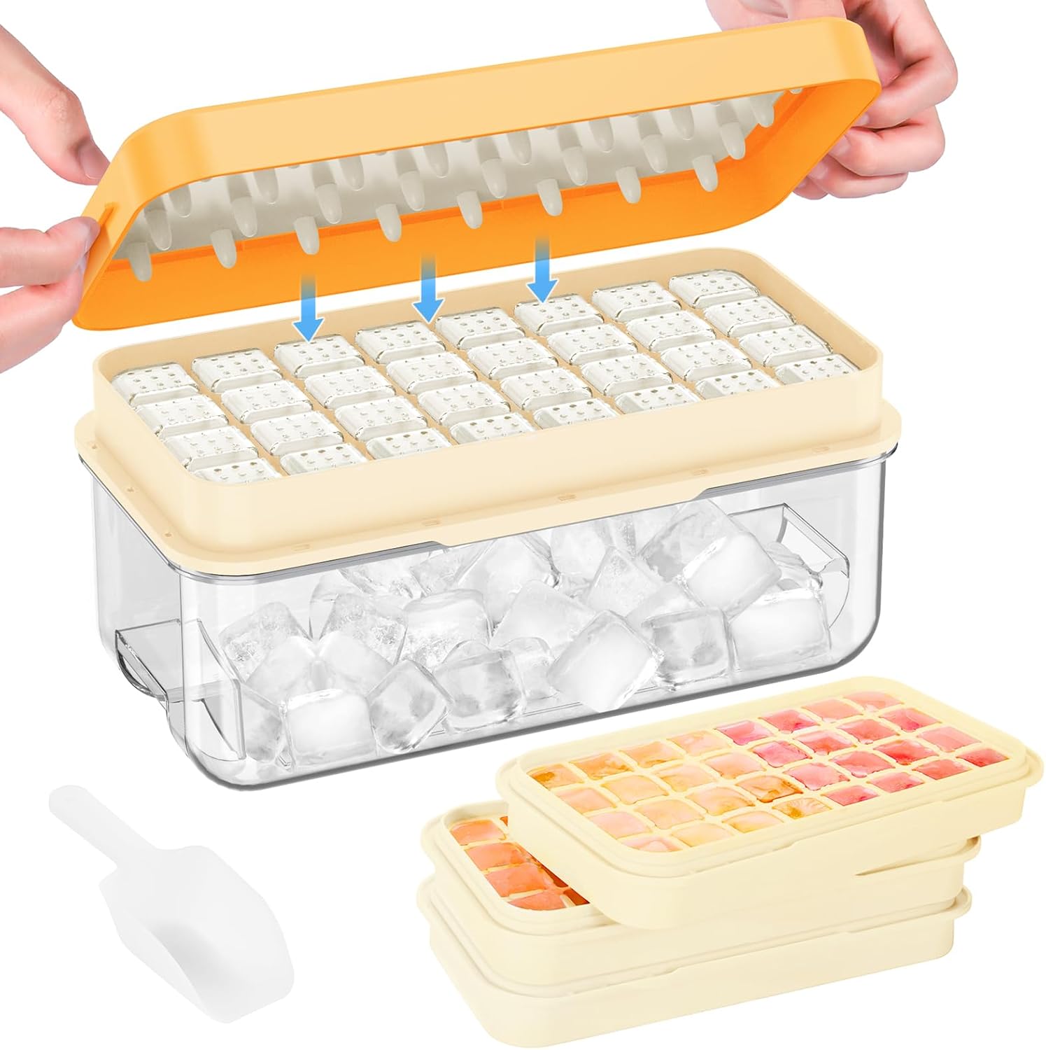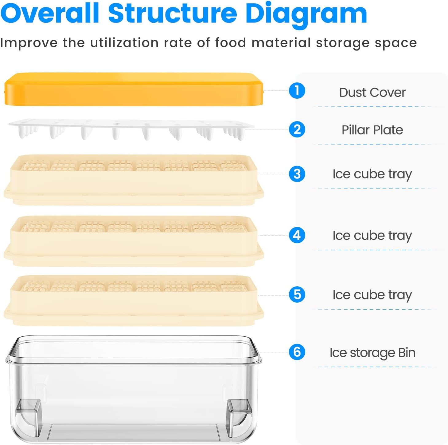 • Newly upgraded press-type ice cube trays, Releases all ice cubes in one second: This ice cube Molds is made of high quality food grade hard plastic and is BPA free. After placing one ice tray upside down on the ice storage bin, close the lid and press the middle of the lid with both hands, all ice cubes can be easily released in one second