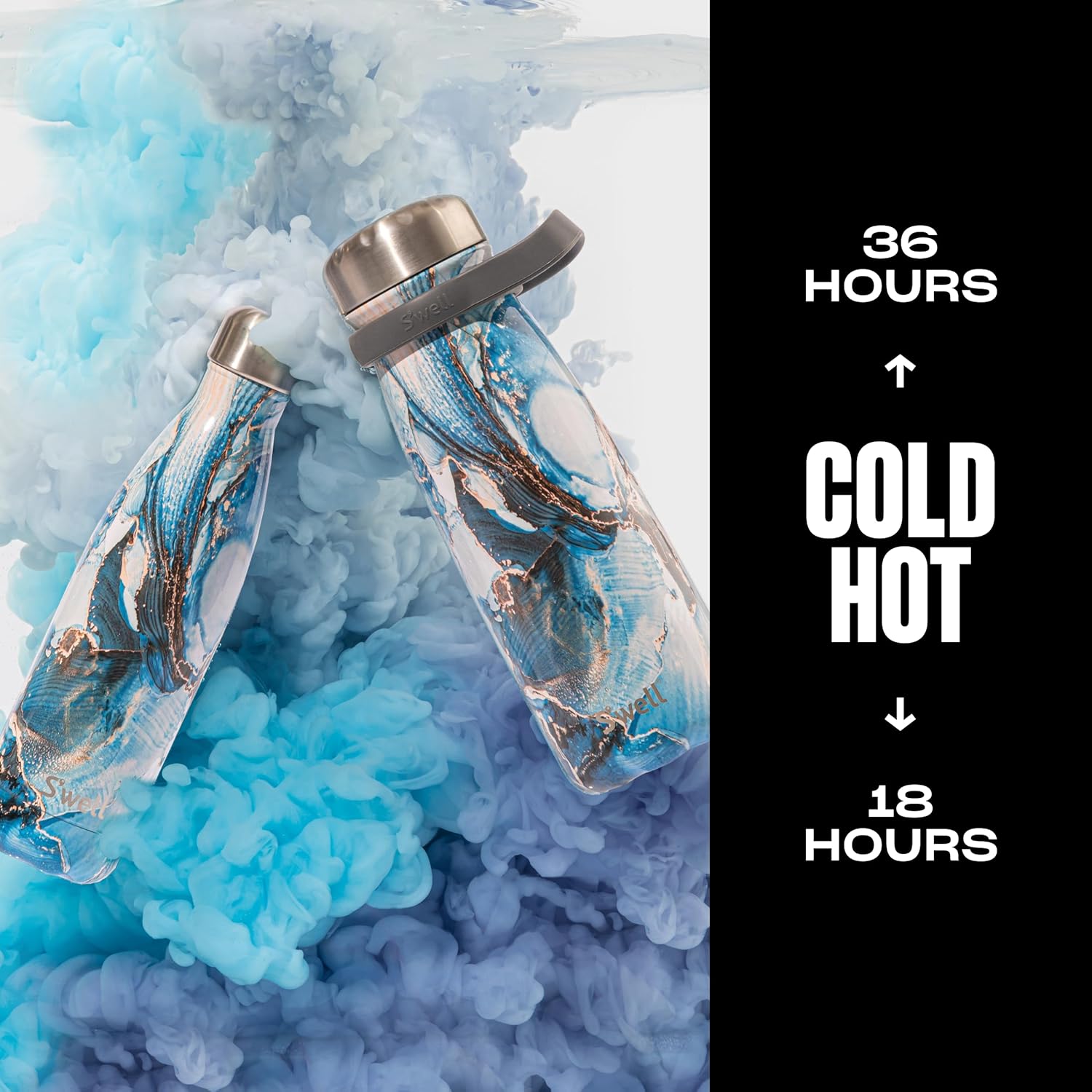 S'well Stainless Steel Water Bottle, 17oz, Ocean Marble, Triple Layered Vacuum Insulated Containers Keeps Drinks Cold for 36 Hours and Hot for 18, BPA Free, Perfect for On the Go