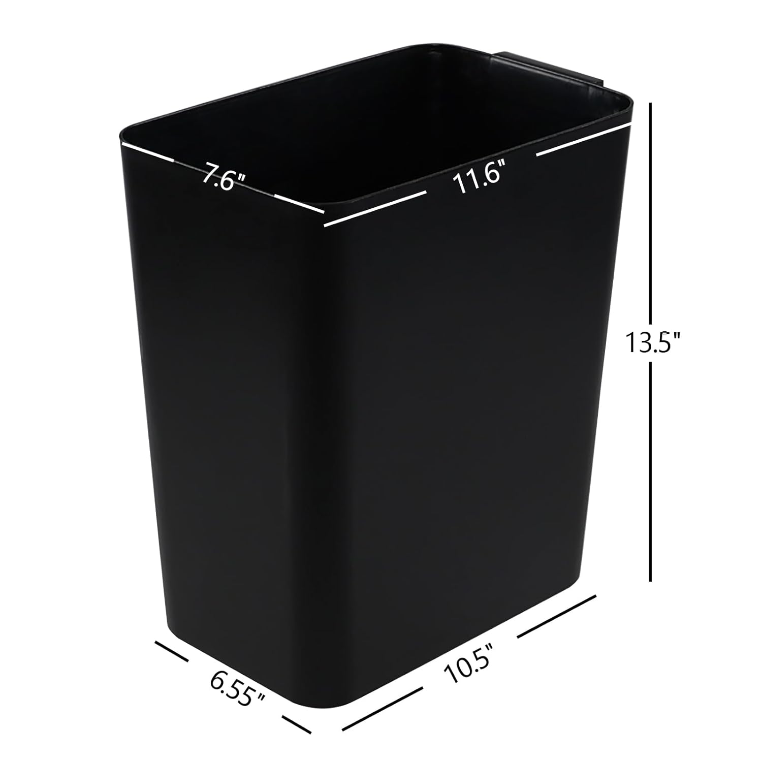 • Top size: 11.6" x 7.6"; Bottom size: 10.5" x 6.55"; Total height: 13.5"