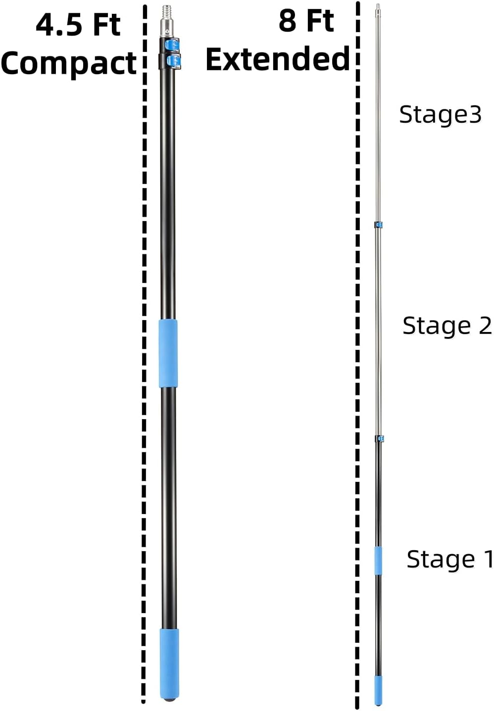 • Comes with a telescopic pole which is made of lightweight sturdy aluminum and features easy flip-tab lock mechanism for adjusting to any custon length from 5 to 8ft.