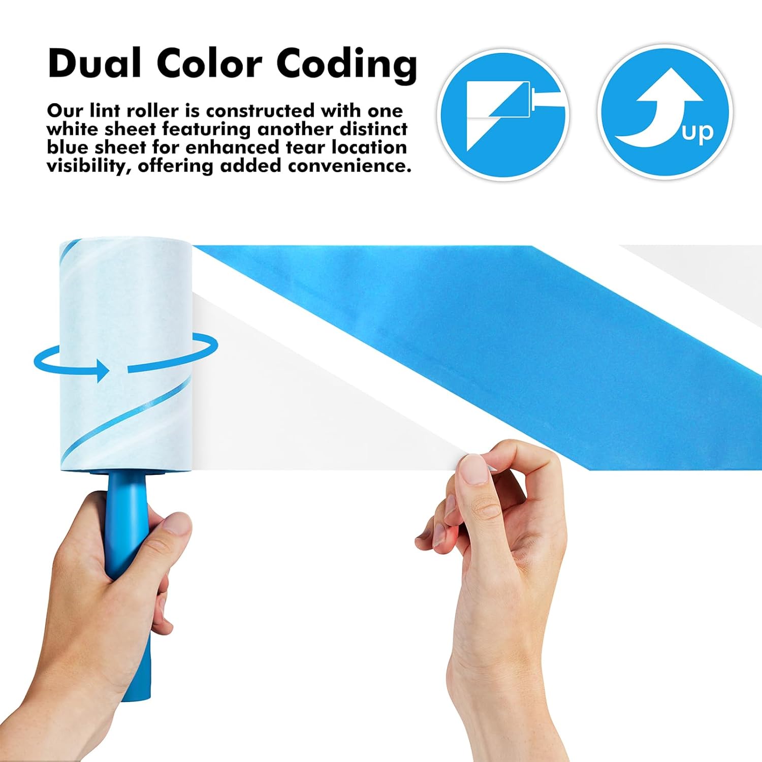 • 1200 SHEETS Economy Value Pack: Package is included 6 lint roller- total 1200 sheets with 6 Upgraded Handles, economy value pack lint rollers set can be long-lasting to meet your everyday clean needs.