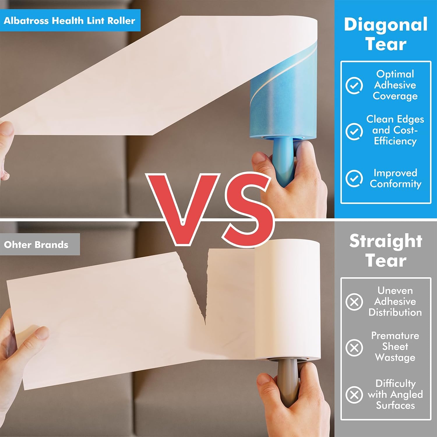 • Easy Tear Design: The lint roller for travel sticker with the diagonal peel design will not get stuck when rolling, you can smoothly peel off each sticker, easy to replace next new sheets.