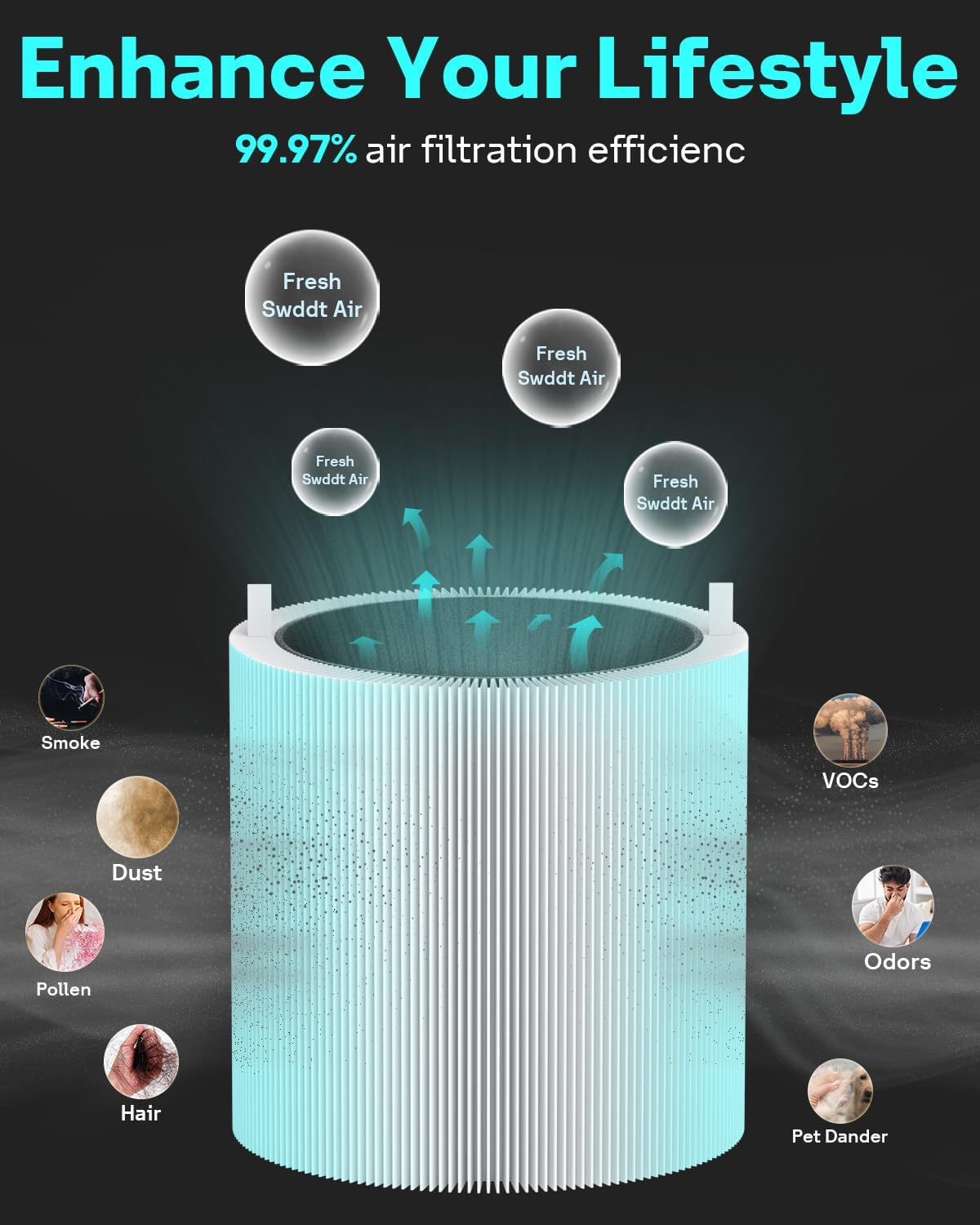 • 【SUPERIOR QUALITY】: Blue Pure 311i Max Replacement Filter for Blue Pure 311i Max Air Purifier,effectively capturing a remarkable 99.97% of particles as small as 0.1 microns, and cleans pet dander, pollen, and dust. The activated carbon filter efficiently tackles household odors and harmful gases, safeguards you from household odors