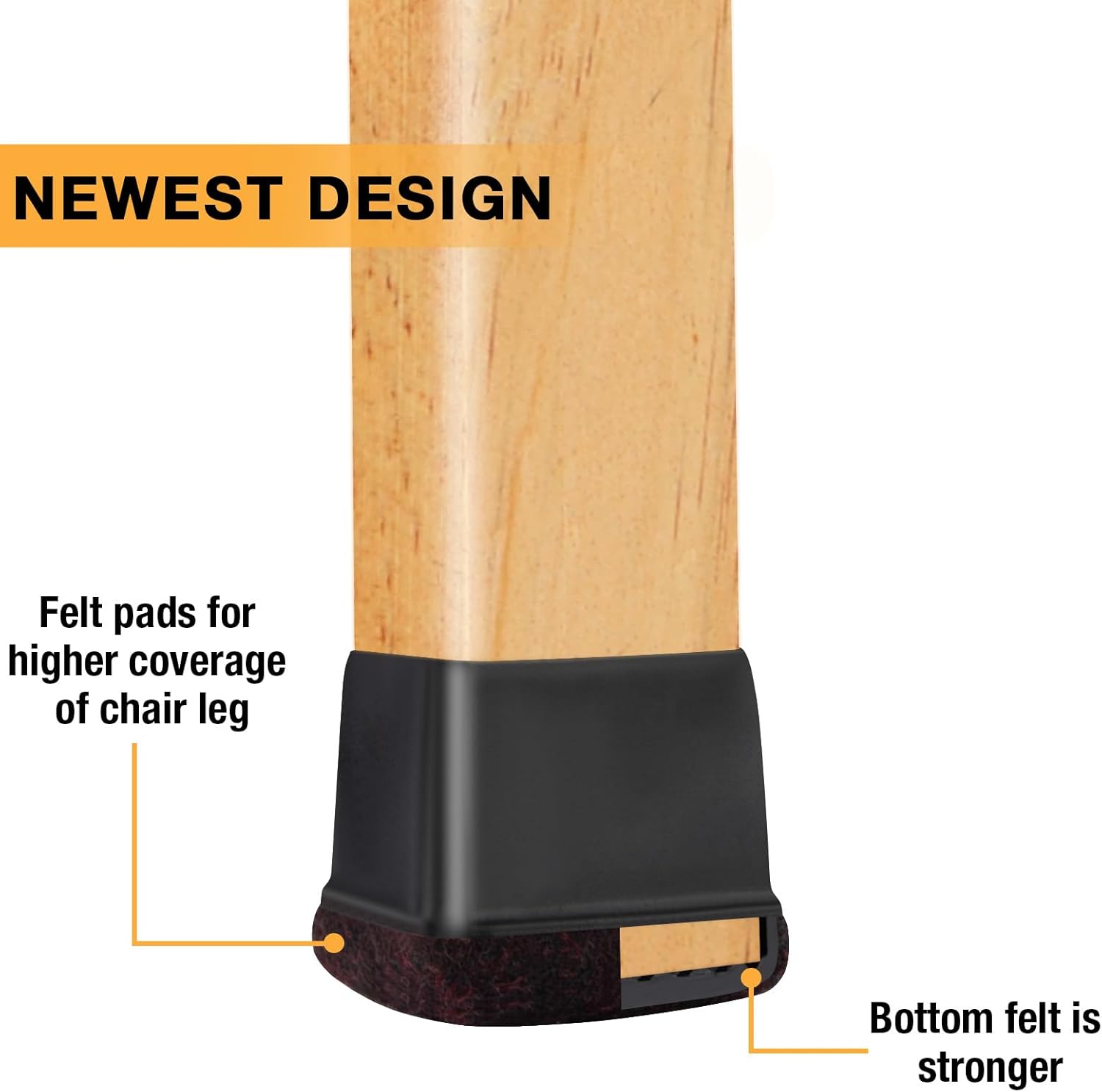 • 【Upgrade New Design】: 360° full felt pad bottom wrapped, which helps the felt bottom be able to touch the floor at any angle, preventing scratching the floor. Our chair leg floor protectors do not use gel. The bottom felt pad and the silicone chair leg floor protectors are integrated with a high-pressure machine to ensure that they will never fall off.