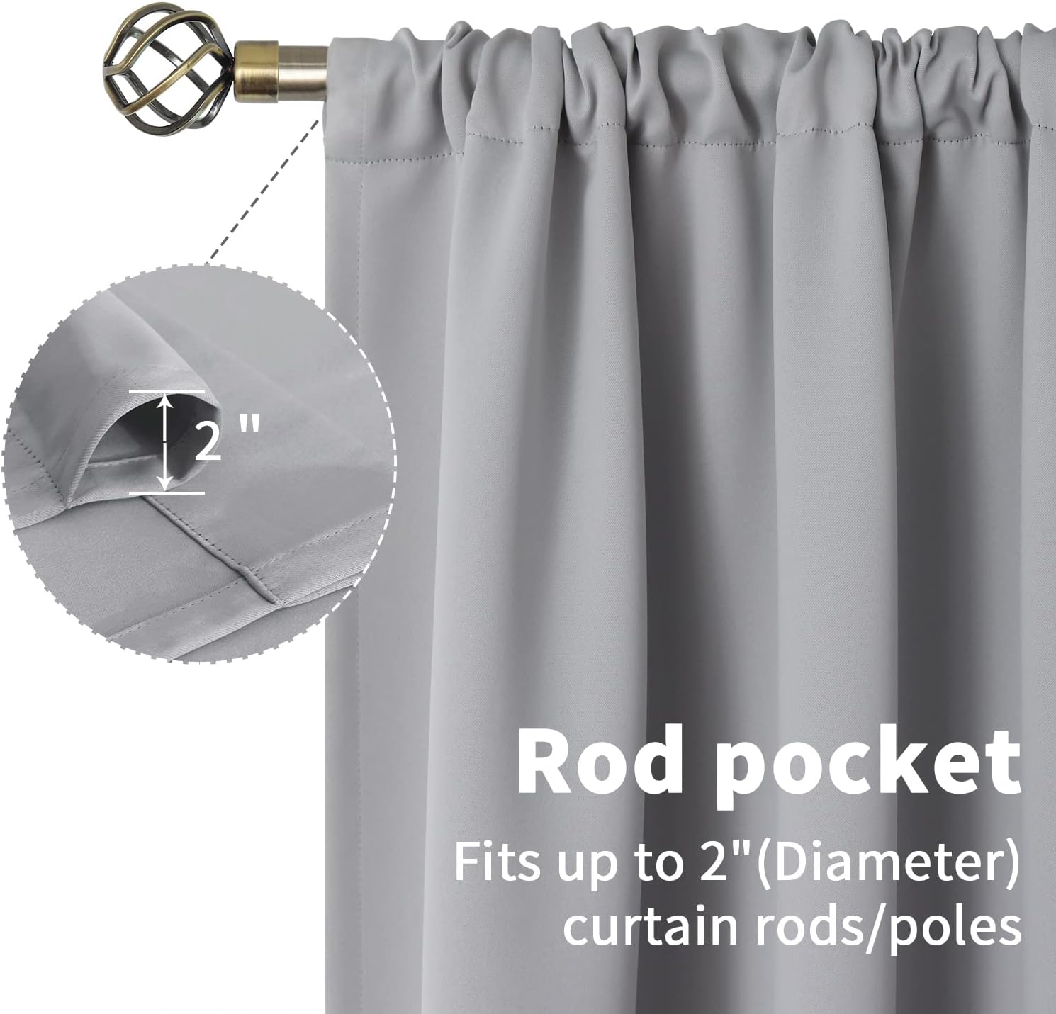 • Package Includes: Set of 2 light grey blackout curtains; each panel measures 42 Inch wide by 48 Inch long.