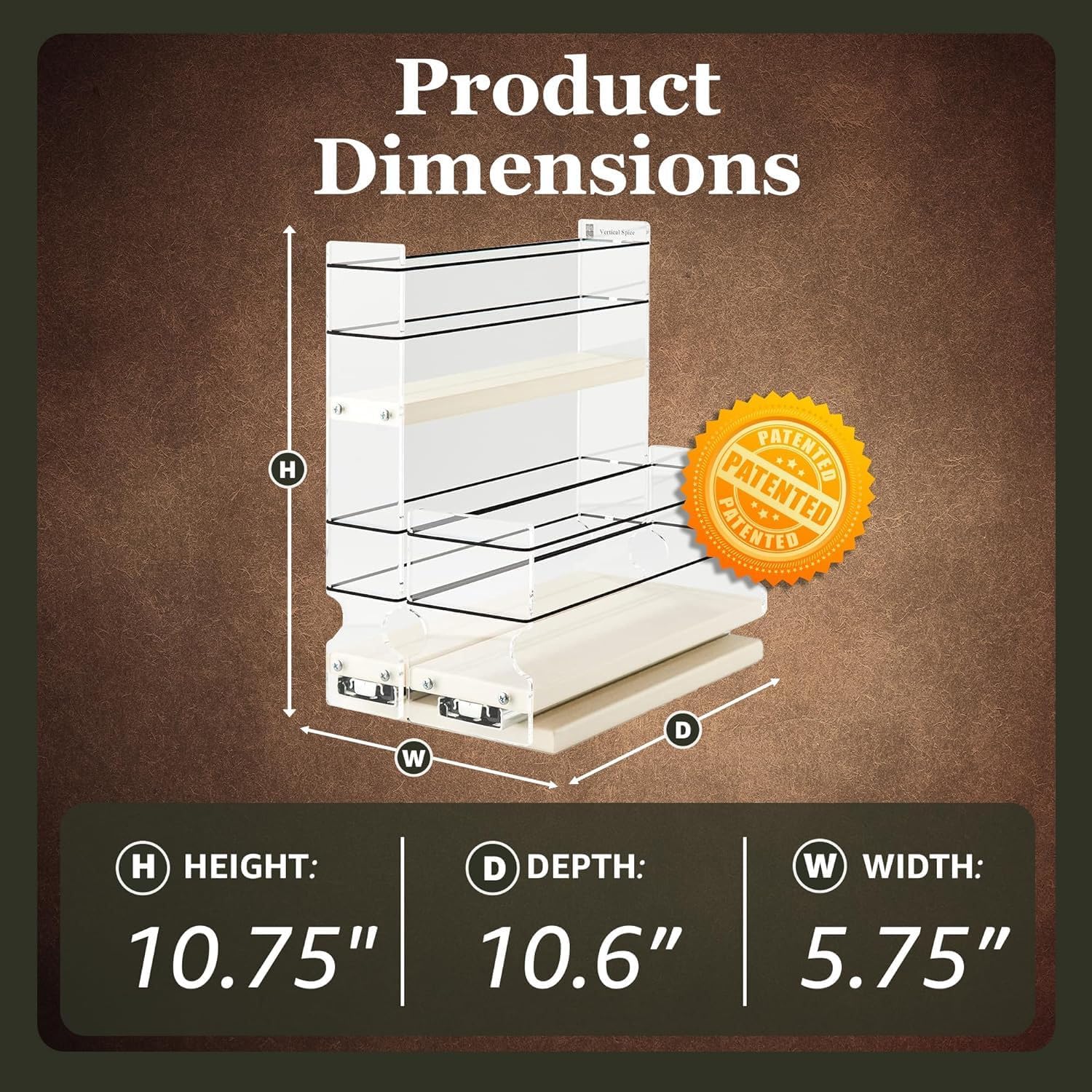 • DURABLE MATERIALS & PATENTED DESIGN: Constructed in the USA with exceptional quality HDPE and acrylic for durability and visibility. Our patented design features flexible polyester sides that stretch to accommodate even oversized containers, making this spice rack a long-lasting addition to your kitchen organization.