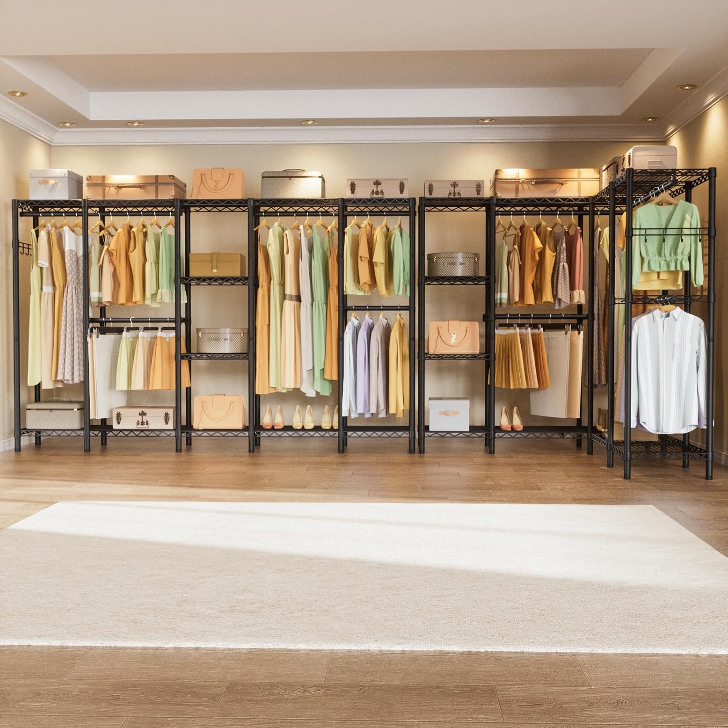 • Endless Closet Possibilities: Golpart Garment Rack goes beyond ordinary storage solutions, offering endless possibilities to design your dream closet. Ideal for bedrooms or as a commercial-grade garment rack in clothing stores, it seamlessly combines generous storage design with smart functionality, providing you with the perfect canvas to organize and showcase your wardrobe