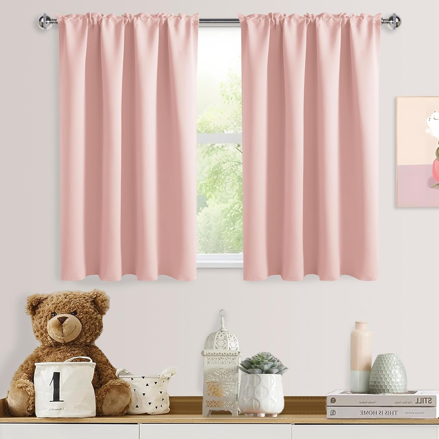DWCN Blackout Curtains for Living Room Thermal Insulated, Energy Saving & Noise Reducing Bedroom Curtains, Blush Pink, W 52x L 36 Inch, Set of 2 Rod Pocket Curtain Panels