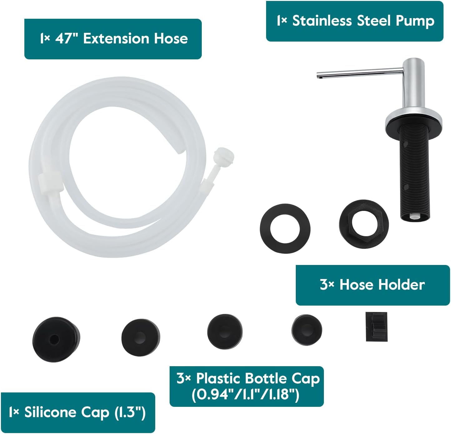 • No More Messy Refills: Our sink soap dispenser pump is equipped with a 47" extension tube, you can insert the tube directly into the large dish soap dispenser. No need to refill small canisters anymore