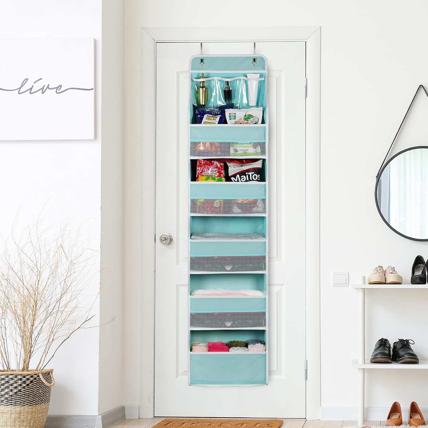 Univivi 6-Shelf Over Door Hanging Organizer Fabric Baby Door Storage with 5 Large Pockets and 3 Small PVC Pockets Wall Mount Hanging Storage Organizers for Baby Essential (Blue)