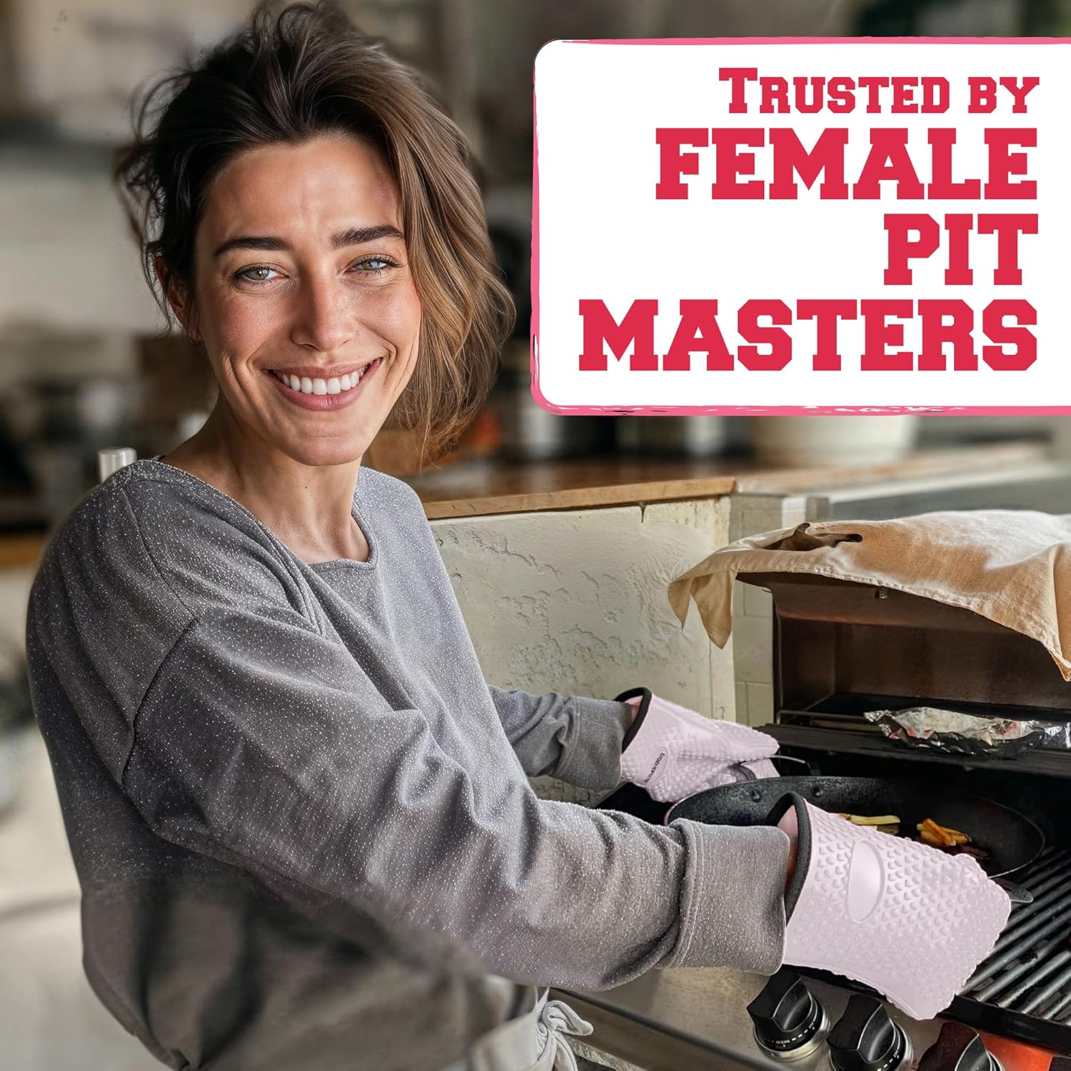 KITCHEN PERFECTION S Silicone Smoker Oven Gloves for Women -Extreme Heat Resistant BBQ Gloves -Handle Hot Food Right on Your Grill Fryer |Waterproof Oven Mitts Cooking Gloves |Superior Set+3 Bonuses
