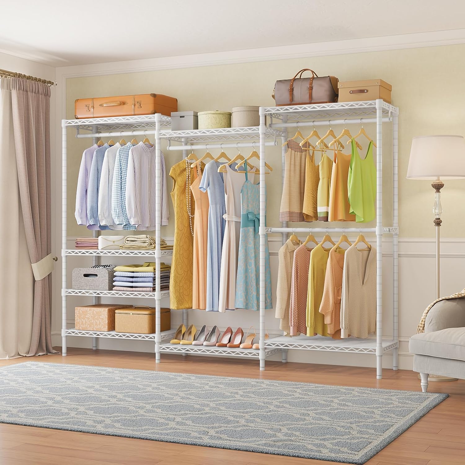 VIPEK V5 Plus Portable Closet Wardrobe Heavy Duty Clothes Rack, Large Free Standing Closet Rack for Hanging Clothes, 85.4" L x 15.7" W x 76.4" H, White