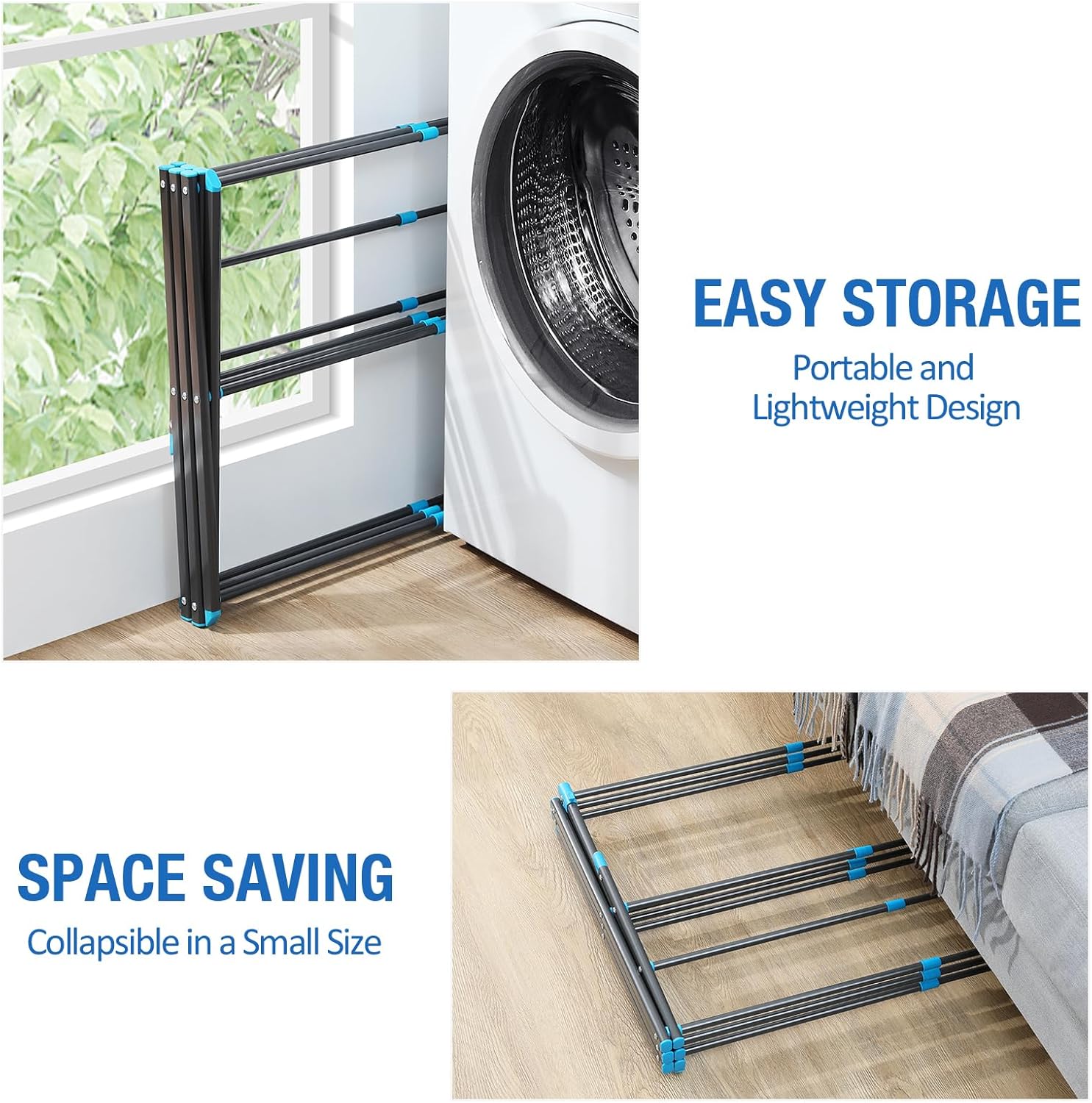 • Expandable Design: The 3-tier laundry drying rack features 11 steel drying rods that can be extended from 17.13 to 29.33 inches in length, providing ample drying space for towels, clothes, sweaters, and more.