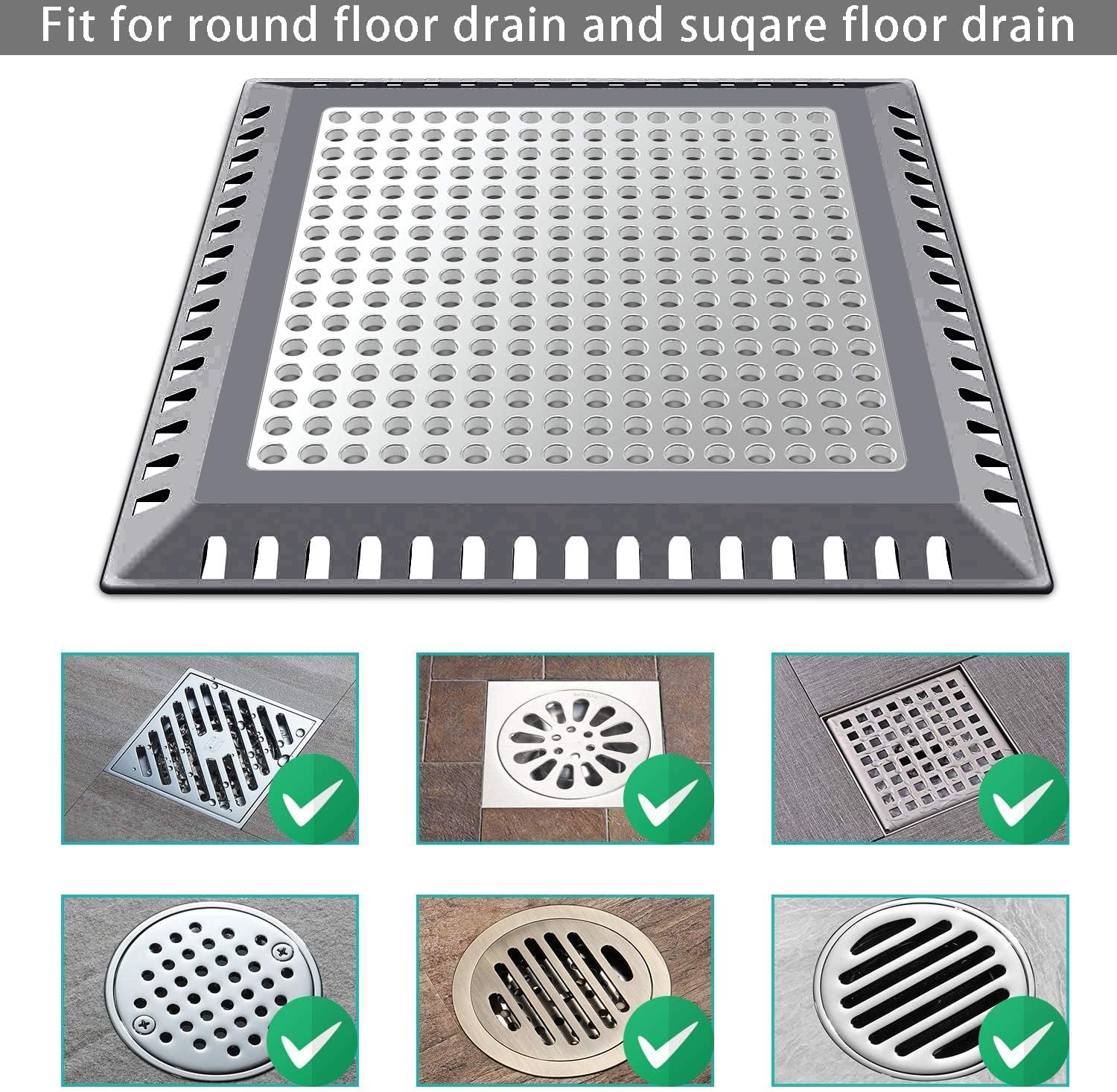 • The shower drain hair catcher is measured 4.9 L x 4.9 W (inches), fit for drain below 4 inch,square shape covers both round and square style shower drains,perfect for shower drain. Attention: pls measure your drain before purchase.