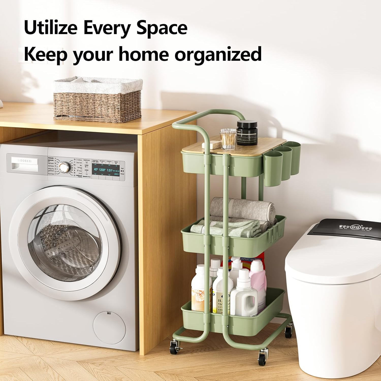 - 3 Tier Detachable Multifunctional Metal Rolling Cart with Metal handle,3 Hanging Cups,3 Hooks,1 Plank , 3 Plastic Storage Basket and 4 wheels including 2 Lockable Casters and 2 normal wheels. 3 tier rolling cart green, 3 drawer storage organizer green, 3 tier shelf green, 3 tier cart green, 3 tier storage organizer green, 3 tiered rolling cart green, 3 tier rolling cart metal green, 3 tier drawer organizer green, 3 tier metal rolling cart green, 3 tier cart with wheels green,