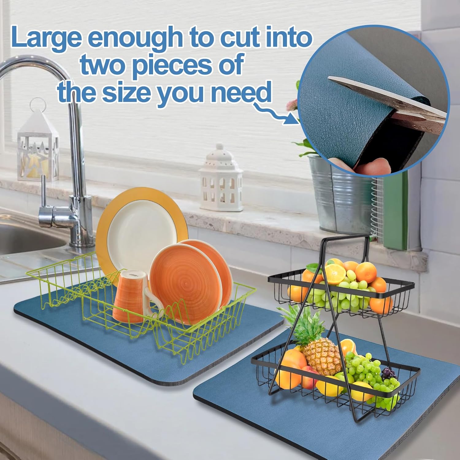 • Dish Drying Mat: Each kitchen counter mat measures 17 x 31.5 inches, which is larger than ordinary draining mats and can hold large pots, pans, and more dishes. Dishmats are perfect for kitchen counters and bathroom countertops.