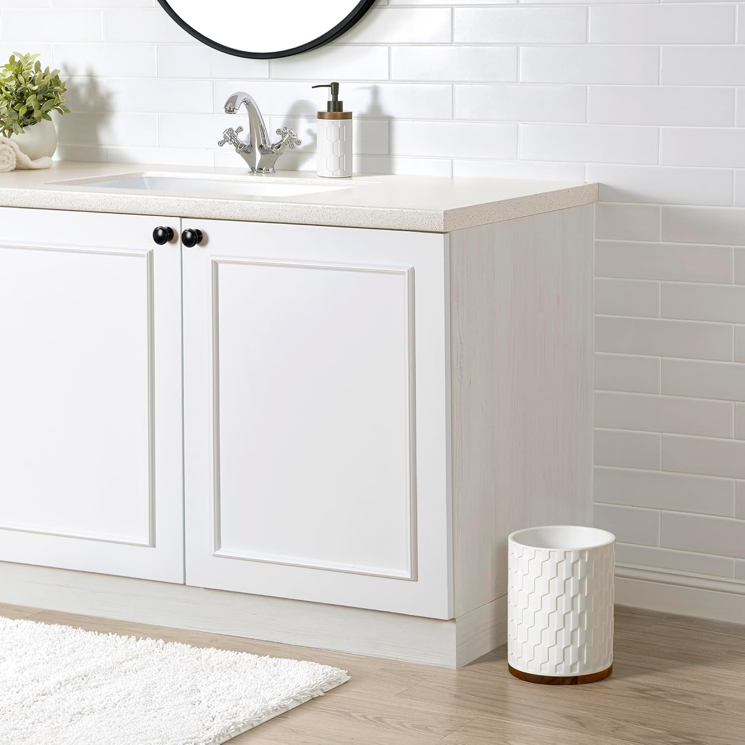 Allure Home Creation Sarasota Resin with Wood Accent Wastebasket Trash Can Compact Size, White, 1.64 Gallons