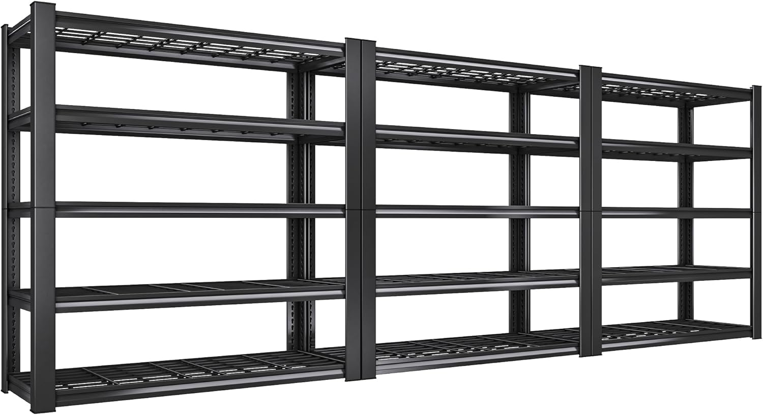 • 【3010LBS Extremely Sturdy】This garage shelving heavy duty has thickened legs. Every solid thickened metal shelf with extra stiffener can hold up to 602 lbs, a total of 3010 lbs bearing capacity gives you good storage experience. No matter how much weight you put on it, the garage storage shelves heavy duty will not wobble or shake