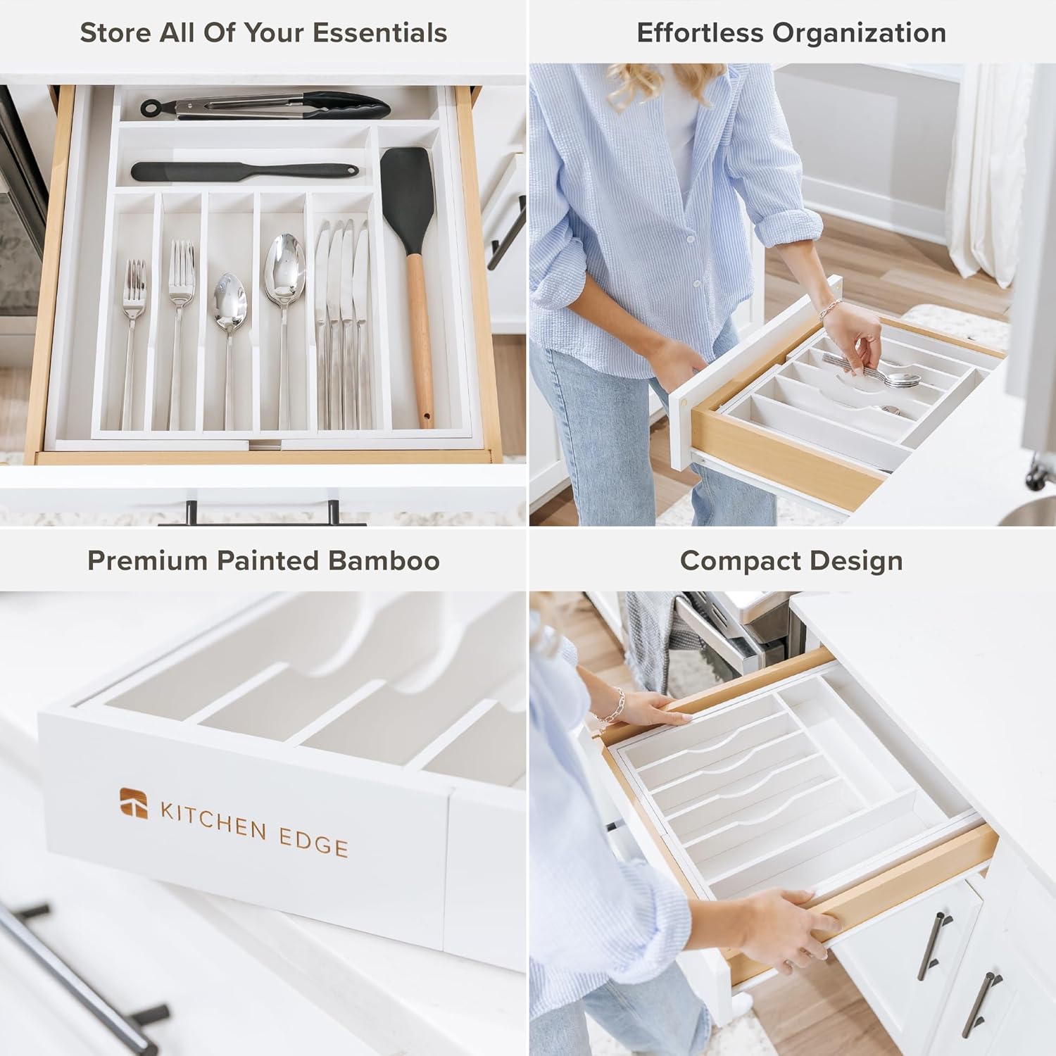 • INNOVATION AND QUALITY AT ITS FINEST. KitchenEdge bamboo kitchen drawer organizers are #1 in innovation and quality. Every organizer in our portfolio offers a unique combination of design and quality features no other bamboo organizer manufacturer can match. All of our organizers are manufactured on the same production line with the same ultra-premium quality specifications, offering you a consistent look and feel no matter how many drawers you organize in your kitchen with KitchenEdge.