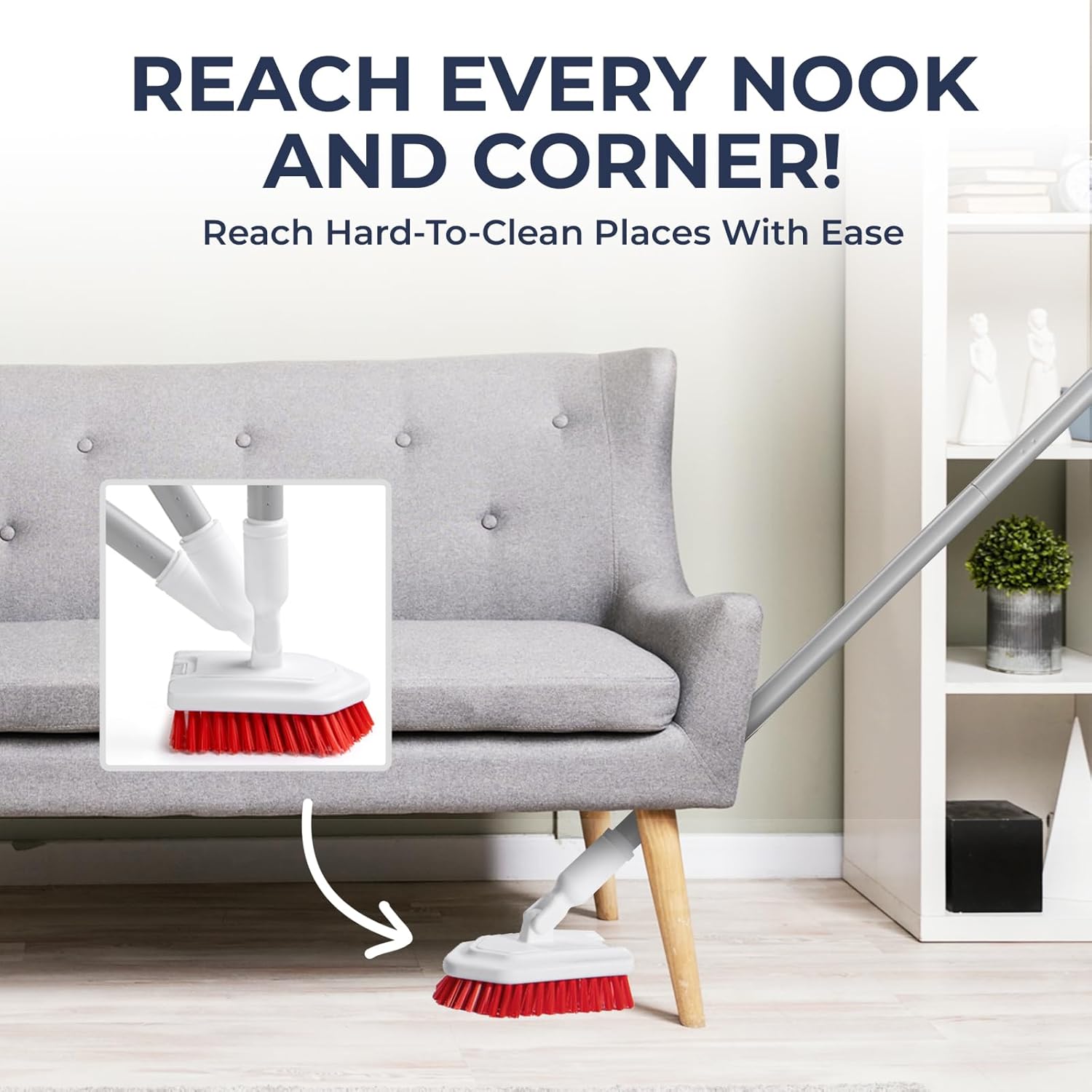 • ADJUSTABLE AND STURDY DESIGN- With an adjustable screw-in pole design and threaded joints that securely lock in place, this scrub brush with long handle eliminates the need to worry about loosening, providing a solid grip and extended reach for efficient cleaning