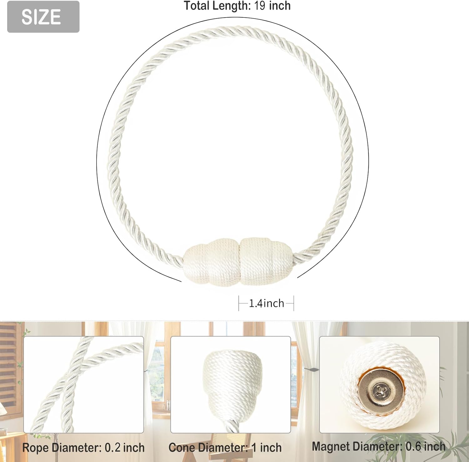 Magnetic Curtain Tiebacks Rope Curtain Tie Backs for Curtains 8 Pack Curtain Holders for Drapes Decorative Window Curtain Holdbacks, White