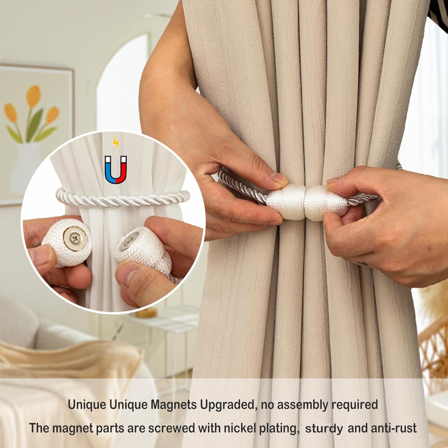 • High-quality materials: Our curtain tiebacks are made of high-strength polyester, Curtain ties made of this material have a comfortable touch. Curtain tiebacks with the latest upgrade magnetic design, Screw fixing does not fall off.