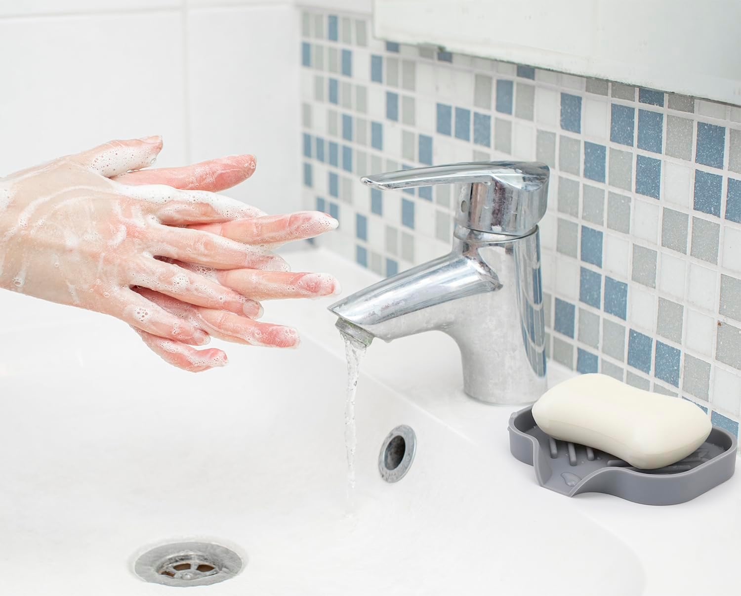 YASMEN 2 Pcs Silicone Soap Dish, Soap Holder with Drain, Sponge Holder for Kitchen Sink, Soap Dispenser Tray, Bathroom & Kitchen Sink Organizer, Rubber Soap Dishes for Bar Soap,Soap Bottles-Black/Grey