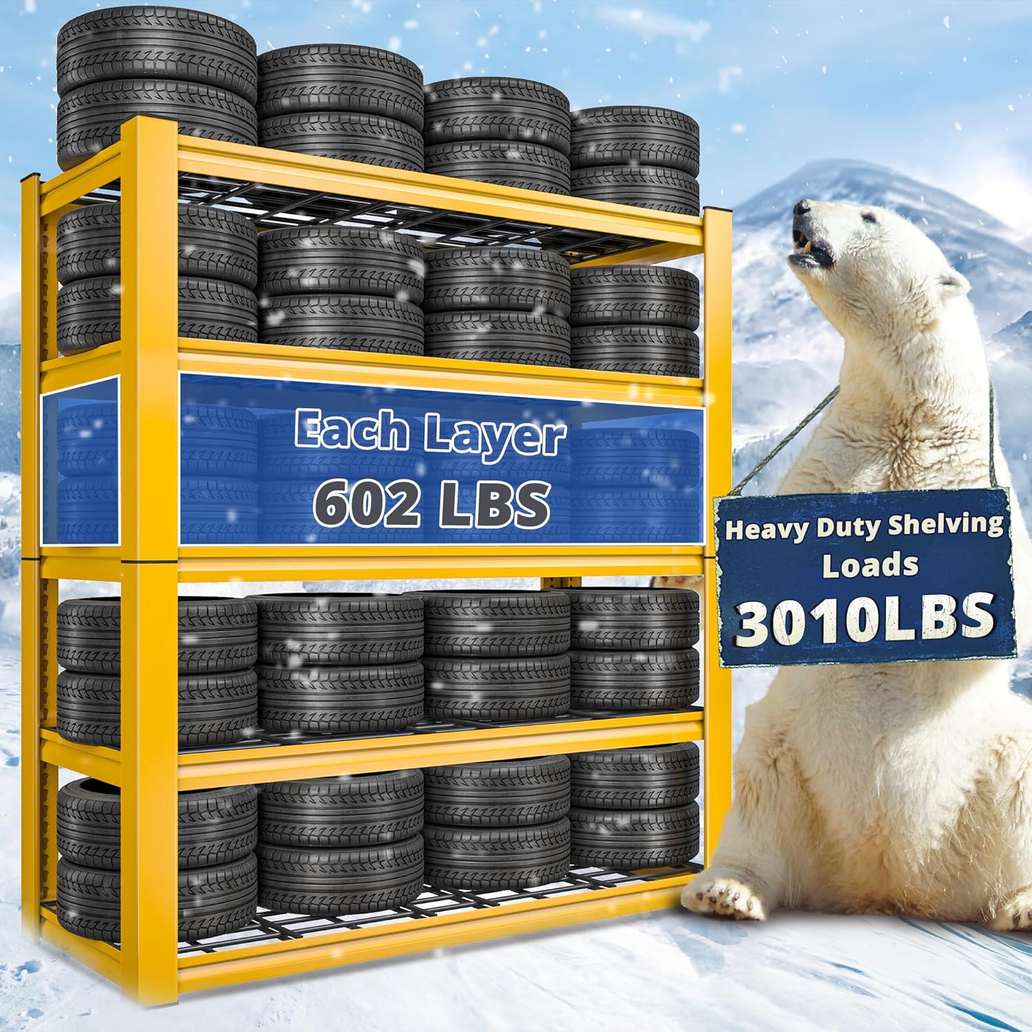 • 【3010LBS Extremely Sturdy】This garage shelving heavy duty has thickened legs. Every solid thickened metal shelf with extra stiffener can hold up to 602 lbs, a total of 3010 lbs bearing capacity gives you good storage experience. No matter how much weight you put on it, the garage storage shelves heavy duty will not wobble or shake
