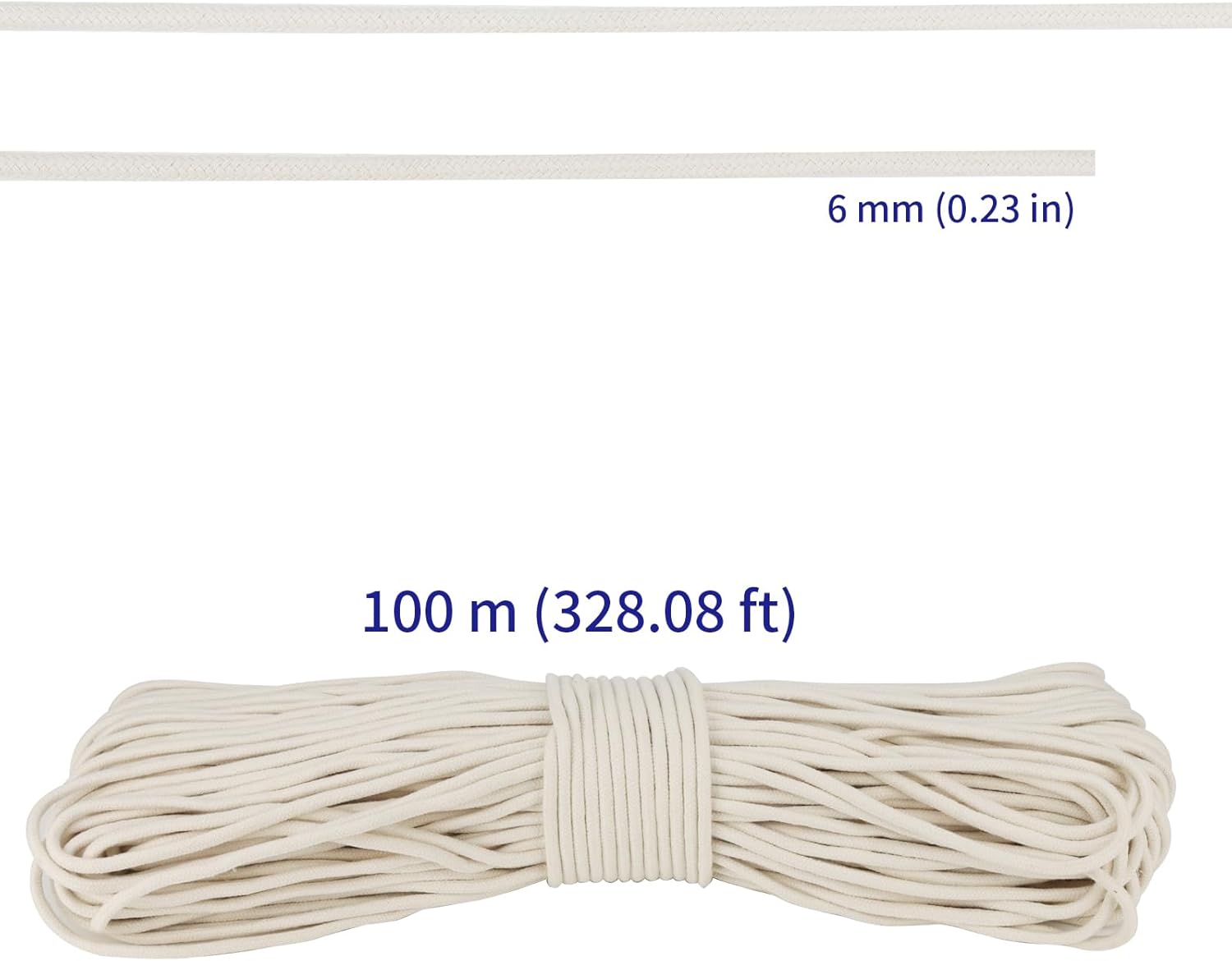 • SIZE - The total length of the white cotton rope is 328 feet, with a diameter of 1/4 inch. The ideal size can meet all your craft needs, and you can also cut any size. The length is sufficient to meet your daily needs.