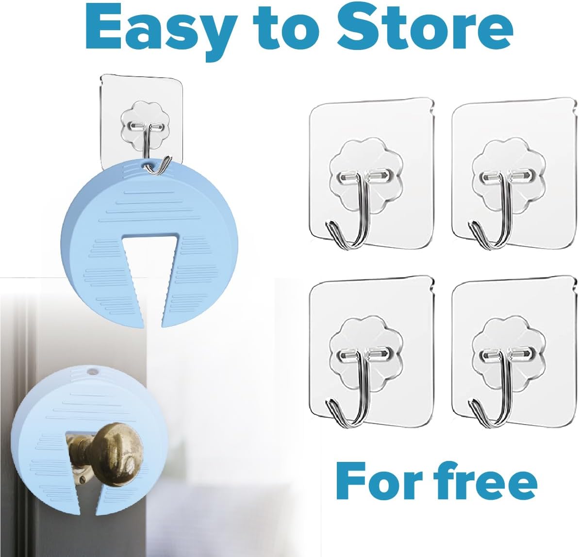 • ๐„๐š๐ฌ๐ฒ ๐’๐ญ๐จ๐ซ๐ž: Just clasp it to the doorknob/door handle or hang it on the hook through the hole on the product when not in use, 4 adhesive hooks come free, no more missing doorstops!